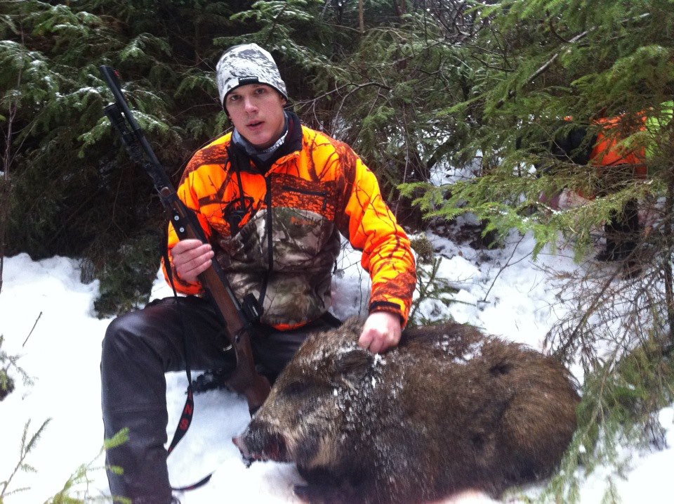Denna grisen sköt jag på ett eftersök under en av våra jakter, den hade gått 2 kilomter men tillslut fick jag in den i siktet när den rusade ut mott oss från en plantering
