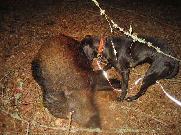 Publicerat April 22, 200817 yr Så vart unghundens andra dödsök avklarat. Blev väl egentligen lite väl sent inatt.. Klockat nassarna vid 01.00 ett par nätter. Kom hem rätt sent efter en kurs igår och konstaterade att jag skulle hinna ut till åteln i lagom tid, ca 12.00 Var bara hemma emellan o hämtade långkalsonger, hundar o bysse. Trevlig natt, bra måne, ugglor som tjoade o räven vart lite skrikig också. Tycker fortfarande att de låter hemskt när de skriker… hua.. Så knakade det till vid 01.18 och en svart klump kom ut. Den var jäkligt nervös, troligen en gylta. Ingen galt iallafall. Så kommer 3 till fram o det är tumultartat en stund, de far hit dit. Ingen vill äta bröd de letar bara säd. Får läge på den minsta och som det såg ut ljusaste gyltan när den passerar kojan på 10 m håll. Måste vara ett skjutbat djur hade jag resonerat mig fram till vid det här laget. Bländas av myningsflamman och ser inte ett skit vad som händer. Tyckte jag hörde något grisskrik efter skott. Hade glömt hörselskydden i bilen så i öronen satt ett par bortskurna hörn av filten jag hade om benen. Hjälpte inget vidare, tjuter fortfarande i öronen. Tinnitus har nog kommit för o stanna… Plockar upp ficklampan o lyser ner mot skottplatsen. Ser blod, så det tog i alla fall. Går ner och konstaterar att det tog bra , tydlig lungträff. Hämta unghunden i bilen och spårar ca 70 m så ligger nassen där. Kunde följt spåret utan hund, va mycket blod de finns i en gris… Men jagar ju o skjuter för att få några dödsök till unghunden i första hand. http://www.niklasaren.se/film/april34.wmv Lite fin rödbrun gylta på 57 kilo. Blev lite tråkigt för gyltan hade 3 foster i sig. Antar att det saknas en gammal ledarsugga. Skulle tro att de andra 3 grisarna också var hondjur men inte så mycket äldre än den jag sköt. Säkerligen betäckta allihop. Vi har då inte skjutit någon sugga alls på säsongens 20 grisarna. Inte innan heller för den delen. Jo föresten det fälldes en sugga av misstag för ett par år sen. Den markbit jag satt på inatt ligger ner mot gränsen till Blekinge. Sugga kan ju trillat dit var som egentligen. Trafiken kan ju också va orsak. Var inte hemma förrän 03.30 så lite sliten är man alt…. Nu blir det bingen några timmar innan ungarna kommer hem.