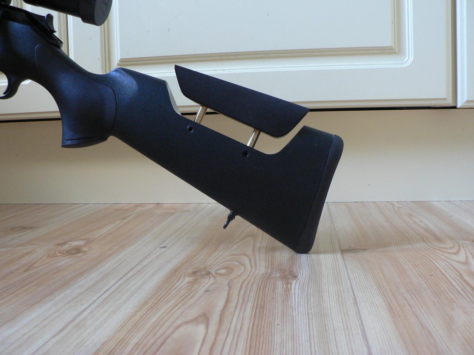 Publicerat Juni 16, 200817 yr Nu äntligen har jag fått hem kolven efter ett underbart kolvkamsjobb av Jocke Smålänning AB. Ställbar i höjd + att kolvkamsbiten är inklädd i neupren. Neuprenet för ergonomin samt att den håller nästan exakt samma färgnyans som greppytorna på kolven.... med andra ord SNYGGT ! För att få tillräcklig kindkontaktsyta valdes att gjuta igen en del av det utrymme som normalt huserar kickstoppern. Detta för att kunna såga ut en lite större bit än vad som är möjligt annars. Denna kolv med Harris stöd skall få jobba hårt den stundande rävsesången !!!!!