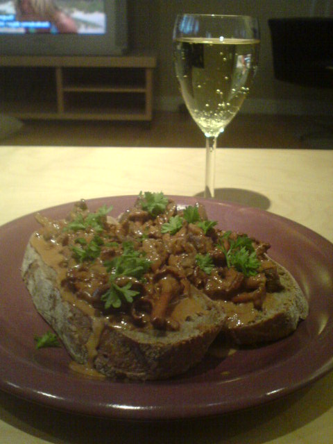Publicerat Juni 21, 200817 yr Om jag endast har med mig hem 2st ripor eller så & blir lite sugen så kan det passa bra att avsluta dagen framför TV'n med denna macka: 1-2 ripbröst 1 st paket grädde Vit-/svart peppar efter smak 1 klyfta vitlök 1 näve kantareller 1 skvätt soja Tärna upp ripbrösten, bryn dom i smör ihop med kantarellerna. Häll i grädden & kryddorna samt vitlöken & soja. Red upp såsen till lämplig konsistens, servera med ett gott rostat bröd gärna ett "grekbröd"... Garnera med lite persilja eller annar mumsigt.