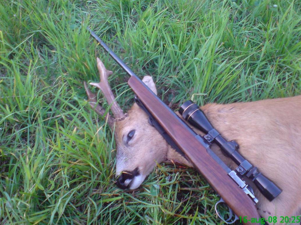 Publicerat Augusti 17, 200817 yr Efter att gårdagskvällens planerade bockjakt gick i stöpet, detta på grund av en fru som mutade med gott vin och grillad rådjursfilé. Å så vips så vart man i soffan istället för på passet. Valde att gå ut i morse istället, detta visade sig vara ett bra drag. Kom på pass vid 04.02 sittandes vid en kornåker. Det låter märkligt, men vid denna åkerlapp har vi haft ganska frekventa besök under hela sommaren av rådjur av bägge könen. Efter ca 20-25 minuter kommer en get smygandes ur skogen. Bra tänkte jag, nu är inte bocken långt borta. Ack vad jag bedrog mig. Ingen bock så långt ögat kunde nå, detta trots idoga lockförsök. Framåt 0545 valde jag att lämna passet för att smyga upp i skogen på ett ganska kuperat hygge. Detta visade sig vara ett bra val. Efter att jag hade spanat av kornåkern jag satt vid förut från hygget för att konstatera att det inte hade dykt upp någon bock så smög jag vidare. Efter 50m stannade jag för att kikarspana över en hyffsat stort kärr/surdrog/moss-område. Där ligger på en av berghällarna som vetter ner mot detta område en bock med en till synes nöjd get Placerade mig i liggande position med stöd av en mossövervuxen liten sten. Började locka lite smått, det behövdes inte mycket. Han ställde sig upp på en gång. Sen kom han som en kanonkula, först när han var på ca 15m fick jag fritt skottläge. Pang! Högt hopp! Rusch! Lägger sig snällt 7meter från mig under en torr gran. Sitter kvar en stund, begrundar vad jag har gjort och inser att vi som får gå ut i skogen under jakten ska känna oss mycket privilegierade. Går fram, tar kort, messar jaktpolaren som sitter lite längre bort. Får tillbaka grattis. Sen hör jag PANG! Han ringer två minuter senare och ber mig komma med hunden Det visade sig att det var en ren bom. Skönt. Sitter på jobbet nu, funderar på om jag sk ut ikväll. TROLIGEN! //erik som sitter på jobbet och planerar kvällen