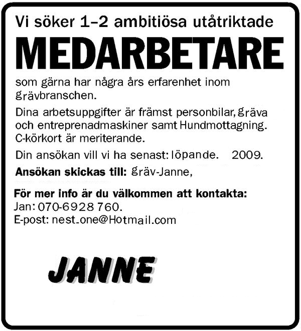 Publicerat September 9, 201114 yr Västerbotten slav sökes kan nog tänka mig hjälpa till o gräva nån gång