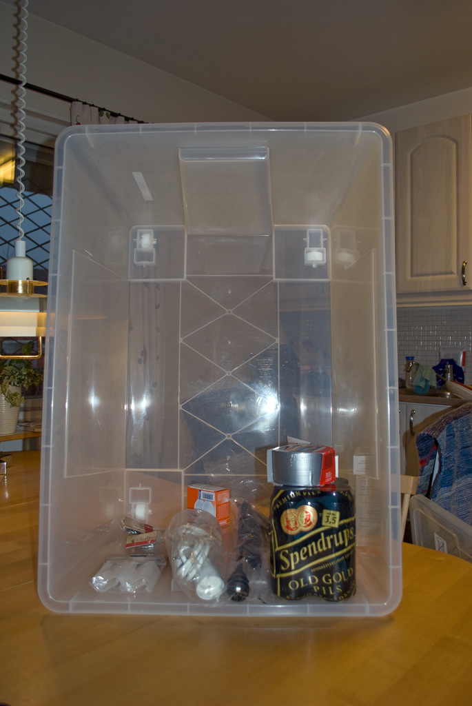 Publicerat November 30, 200817 yr Jaha. Efter en del ritande och räknande ramlade det ner en pollet, IKEA.. Ingvar Kamprads livsverk kanske hade något att erbjuda?? sagt och gjort, iväg till familjernas konsumptionsparadis för botanisering samt, visade det sig, inköp av material till "My very first home made Biltong kick ass maker".. Får vi hoppas. material: plastbunke tänkt för förvaring, modell större, silvertejp (K-rauta) lamphållare med mera. Tog även en sväng förbi kära gamla ICA parkhallen för inköp av nötkött som testsubstrat samt en del nödvändiga DYI tillbehör.. ovan vid bildhanteringen på denna sida.. hoppas det inte tar för mycket plats. T