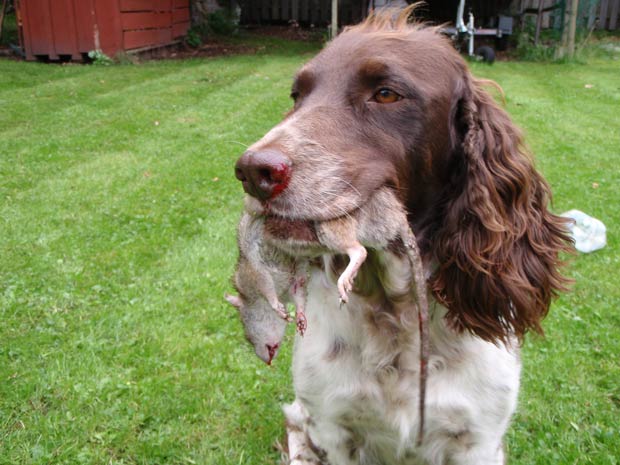 Publicerat December 6, 200817 yr Min farmors labbe med det något missvisande namnet "Laika" (efter den sovjetiska kosmonauthunden och inte rasen förstås) var specialist på att ta jordråttor. Det var ofta man kunde se hennes något korpulenta bakdel svajades glatt i potatislandet för att sedan komma fram med en svans stickandes ut ur ena mungipan. Ett litet proteintillskott till den råa potatisen hon också försåg sig med. Labbar och deras aptit..