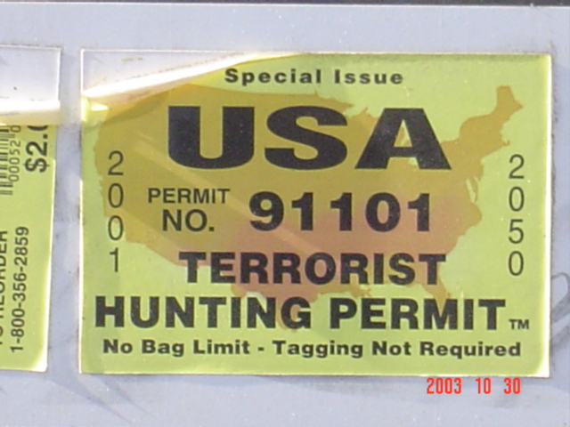 Publicerat Oktober 8, 200817 yr Författare Första gången vi besökte staterna var 2001. Alla vet ju vad som inträffade den 11 september i USA. Vi kom dit den 25 september och säkerheten var rigorös på gränsen till vansinnig på flygplatsen i Detroit. Vård jaktkompis delade sedan ut en licens som ni kan se på bifogade bild. För dom av er som inte vet vad tagging betyder så kan jag säga att det är när man fäster en liten lapp från sin licens på det skjutna djuret. På så sätt har den licensen använts. Om du inte gör detta och fraktar en hjort på flaket så åker du dit för olaga jakt. No bag limit= Ingen begränsning på hur många du får fälla. En ganska rå licens egentligen. Men speglar sinnesstämningen i USA vid den tiden.