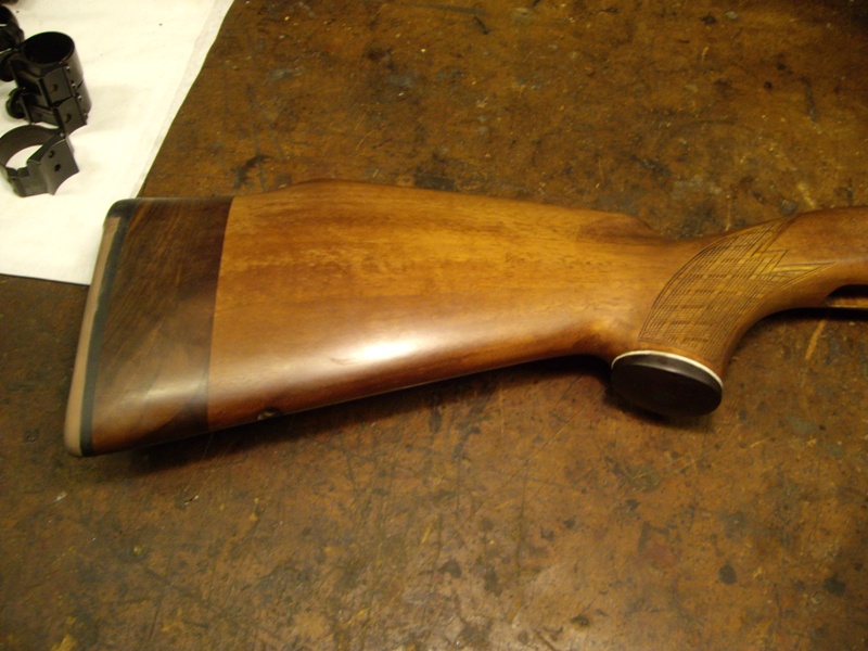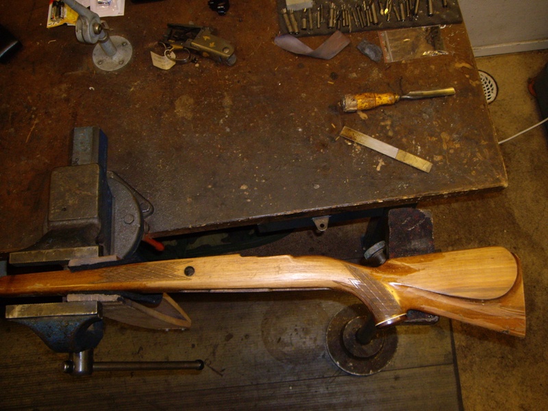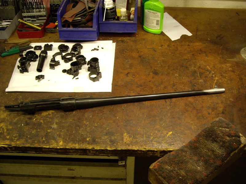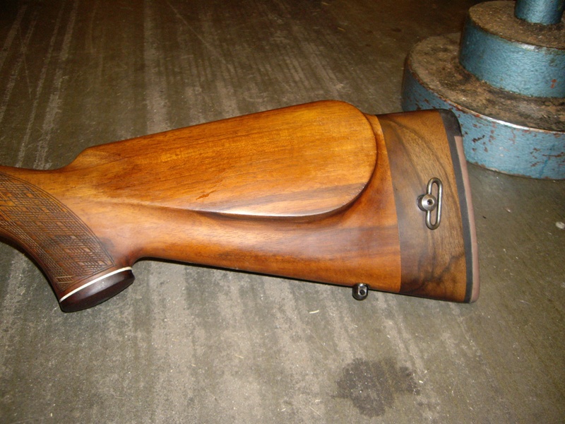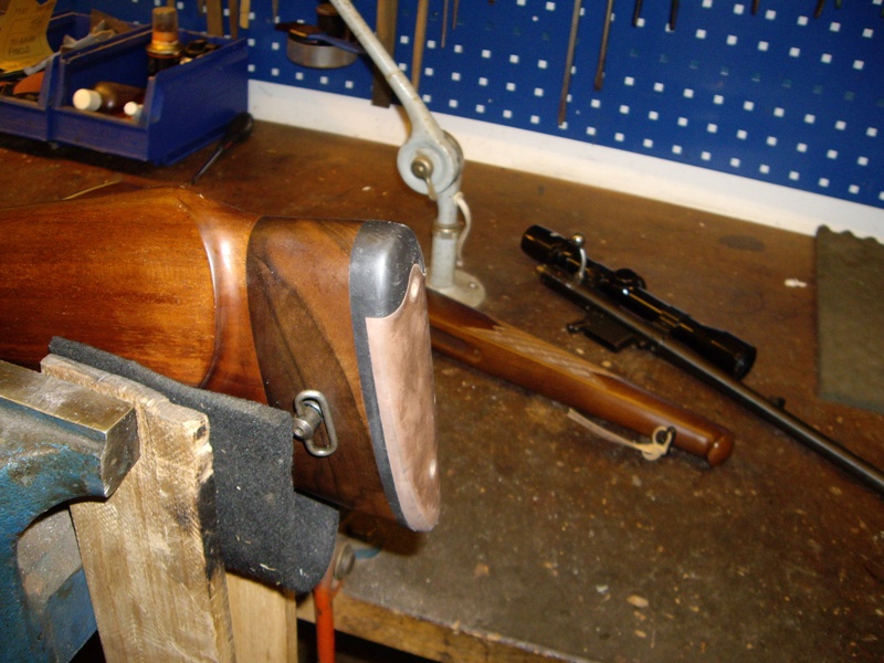 Publicerat Januari 14, 201016 yr Författare Då är det väll dags att skriva sluttampen på denna tråden med bilder och text. Som ni kan läsa i första inlägget så ville jag ha ett vapen med kolvhalssäkring som hundförarvapen. När jag så började min praktik på Vapensmedjan i Oskarström så fick jag ganska s omedelbart ett vapen i händerna. En Voere i kaliber 30-06 med sliten lack, kolvhalssäkring m.m. Jag fick uppdraget att fixa bort lacken på den och snygga till den. Till slut blev den så himla bra så jag köpte den vilket resulterade i att detta fick bli mitt examensarbete. Följande skulle göras: Kapa pipan till 47cm Sätta rembygelfäste på sidan av pipan förlänga kolven från 30cm till 35cm instalera "flush-cups" på sidan av kolven instalera nytt sikte och nytt korn, model grovt Fixa till trycket Blånera om hela kalaset Till att börja med så kapade jag pipan till 47cm och krönde om den. Sedan så lödde jag på ett rembygelfäste på sidan av pipan. Slipade och polerade sedan hela vapnet inför omblåneringen. Lödde på siktesbasen och limmade på kornbasen. blånerade om hela rasket och sedan började jag på träarbetet. Förlängde kolven cirka 5cm och instalerade en äldre modell av Flush-cup i sidan på kolven. Det är enklare att visa det i form av bilder så därför slänger jag in så mycket bilder jag har under projektets gång. MVH/Jocke