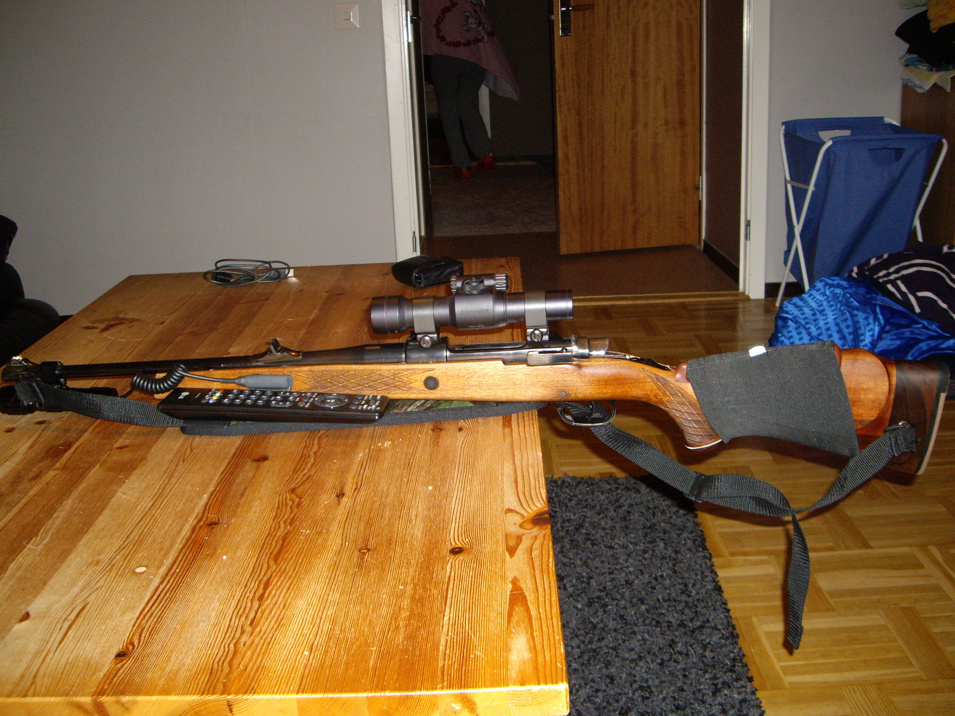 Publicerat Januari 27, 200917 yr Bakgrund För att gå rakt på sak så är det ett drevjakt, hundförar och vakjaktsgevär som jag har tänkt att fixa till. Det kommer inte att bli något större projekt bara så ni är medvetna om det. Men jag valde ändå att lägga den under projekttråden då planeringen har varit enorm Jag har länge funderat på allt ifrån Mauser 98 till Blaser R93 och SR830/850 men inte riktigt hittat det jag vill och inte riktigt blivit "kompis" med tanken på att bära på t.ex en SR850 eller SR830 i ur och skur. Blaser R93 prof. har ju då stått väldigt högt i kurs i mina tankar, tyvärr gör dom det även i pris. Jag valde då helt enkelt att köpa mig en Mauser M98 i 8x57JS att köra med. Från början va det tänkt att jag skulle ha den som den va med öppna riktmedel och en relativt lätt 170grs kula som jag laddade ner i rimliga farter. Jag hade ett lager med Hornady 170grs RN kulor som jag laddade upp ett gäng. Tyvärr gick dessa åt fanders för högt. Så jag beställde två askar med 220grs Game king, tyvärr sköt jag 10 - 12cm högt även med dessa fristående I bänk gick det hur bra som helst med 220grs kulorna men direkt jag ställde mig upp och sköt så satt träffarna högt. Började då att spåna på vad jag skulle göra om på den här bössan för att få den bra. Optik va tvunget, om det skulle bli Aimpoint eller ett kikarsikte visste jag inte men hur som helst så var bössan tvungen att borras för montage. Jag var också tvungen att byta säkring ifall det skulle bli ett kikarsikte som valet föll på. Även höja kolvkammen på stocken alternativt köpa en ny stock. Som ni förstår så såg jag min plånbok helt plöttsligt få ben och springa bort för all evighet Jag valde då att avyttra 8x57:an till mer behövande. Så min far köpte den och ska nu bygga om den till en smäcker M98 i kaliber 7x57Mauser (snacka om att plånboken kommer att springa bort ) Började nu att fundera allvarligt på vad jag igenteligen höll på med. Jag har ju en Tikka M55 i 308win som borde fungera bra. Jo det är klart hade det inte varit för den fina stocken när man går med hund eller för att den ger fan i att mata var annan patron vilket känns väldigt otryggt när man står på en vildsvinsjakt. Förresten så var jag ju på vildsvinsjakt (drevjakt) i söndags med min 308win. Vilket var det som absolut fick sätta stopp för att de vapnet ska med på fler derjakter då det inte kändes tryggt efter en insident i September då jag sköt på ett rådjurskid som vände och kom rakt imot mig och när den var inne på 30meter så höll jag i skallen och..... KLICK!.... Tänk om det hade varit ett skadskjutet vildsvin i stället för ett skadskjutet litet ynkligt rådjur som la sig ganska så omedelbart efter klicken. Hade det varit en galt tror jag inte den hade lagt sig så vackert så man hade fått gå fram och sticka den utan minsta bekymmer. Med detta i tankarna så kände jag mig allt annat än trygg när jag stod på pass i söndags med min Tikka 308:a. Visst det går säkert att fixa till matningen. Men jag tror aldrig att jag kommer att få tillbaka tryggheten för detta vapnet helt efter incidenten i höstas med rådjuret. Därför väljer jag att enbart använda min Tikka till lugna skott där det krävs ett klass 1 vapen. Bygget Om man har en pappa som är en M98 fantast ut i fingerspetsarna så är det svårt att bli påverkad vad det gäller valet man ska bygga utav. Dock vill jag inte ha problemet att jag vill bygga om en massa saker på en ursprunglig 98:a utan jag vill ha en 98 mekanism men en modern sådan. Jag har för ett par år sedan ägt en Ruger M77 MKII i kaliber 280rem. Jag var fantastiskt nöjd med vapnet i sig. Det var väll mer kalibern som gjorde mig skotträdd och sedan va det kört. Så att valet av "stomme" kommer att falla på Ruger känns självklart. Jag har dock kommit till insikt med att MKII inte är den optimala utan jag skulle nog föredra en gamal hederlig MKI med kolvhalssäkring i och med att jag ska gå som hundförare + att jag tycker att en kolvhalssäkring sitter föbannat väl placerad. På bilden är det just en Ruger MKI i kaliber 308win. Tycker att mekanismen är väldigt smutt Kaliber Även här har min far smittat av sig och det grövsta. Och jag börjar på nätterna att surrat något i stil med 7x57 bla bla..... Men helt klart är att en Ruger MKI i 308win eller 7mm-08rem hade varit en dröm att ha i skåpet. Så det är främst där krutet läggs. Optik, fästen m.m Jag är ganska så klar över att det kommer att bli en Leupold 2-7x33 eller en Leupold 1,75-5x20 som drev och hundförar riktmedel. Detta kommer att sitta i Warne QR fästen för Ruger. Till grisvaken i kojan där jag vill ha ett smidigt vapen kommer jag att köpa mig ett tyskt kikarsikte i 8x56 alt. 6x42 även det kommer såklart sitta i Warne QR fästen. Pipan på vapnet kommer att kortas till 50cm ungefär. Som pricken över i:et och antagligen det som kommer att förstöra vapnet lite vad det gäller de estetiska dragen är att jag kommer slänga på en patronhållare Typ sådan man trär över stocken också ska det pallras under med liggunderlag tills jag ligger perfekt i anläggningen. Detta var allt för den här gången så håller jag er uppdaterade och det jag kommer leta efter nu i första hand är en Ruger MKI i 308win eller 7mm-08Rem. Och direkt jag hittat det så kommer denna tråden att ta fart! Med byte av trycke m.m. Jag väljer att avsluta med ännu en bild på en Ruger 77 MKI. MVH/Jocke