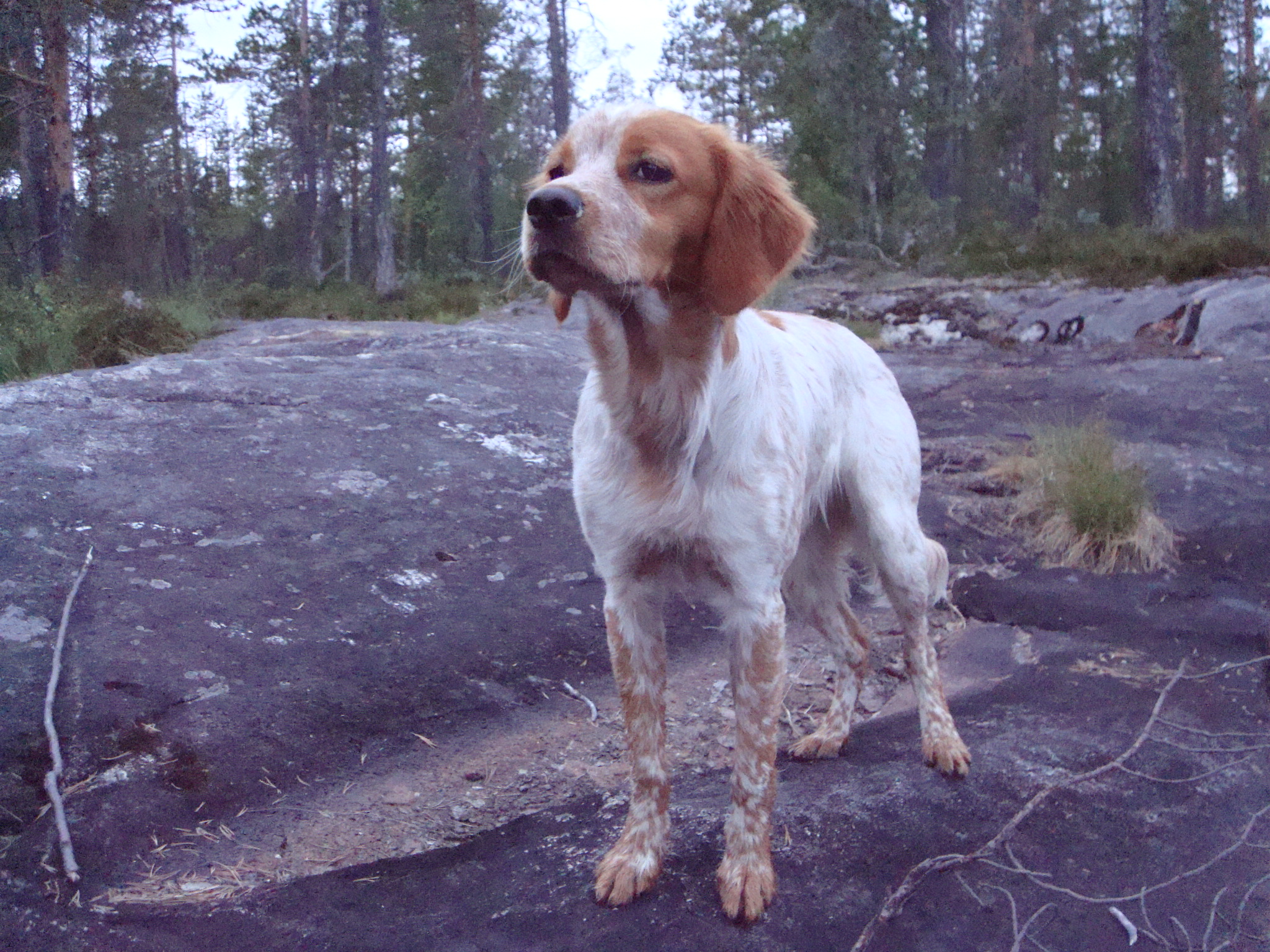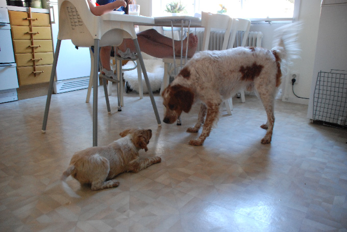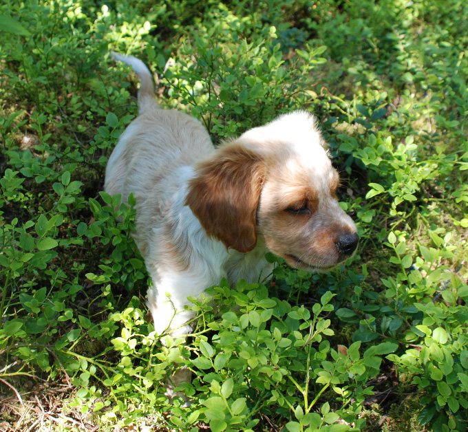 Publicerat Juni 27, 200916 yr Författare Idag har varit en dag kantad med massor av nya intryck för valpen. Skogspromenad stod på schemat men de ble sååååå mkt mer idag Sagt o gjort, ut i skogen. Lite senare fick Primus känna på sin första fågelkontakt. Inget som utlöste stånd, då jag kallade bort dem från vittringen, men ändå Vi hörde fågeln lätta 30m in i skogen. Klättra bland stenar o bada ifrån halkiga algstenar hörde väl ibte till favoriterna men inte heller nå läskigt direkt. Så varmt de va kan man ju inte heller vara utan ett dopp Älskar man korv kan inte lite vatten avskräcka. Inte ens en simtur. Att de var 20grader minst i sjön gjorde ju inte saken svårare Med fågelkontakten från skogspromenaden i minne kom ju givetvis en ripvinge o metspöet fram fram för att kolla hur de stod till med ståndanlagen Sen har det varit en del sittövningar o så också men inget me bild. Imorgon e de nya äventyr