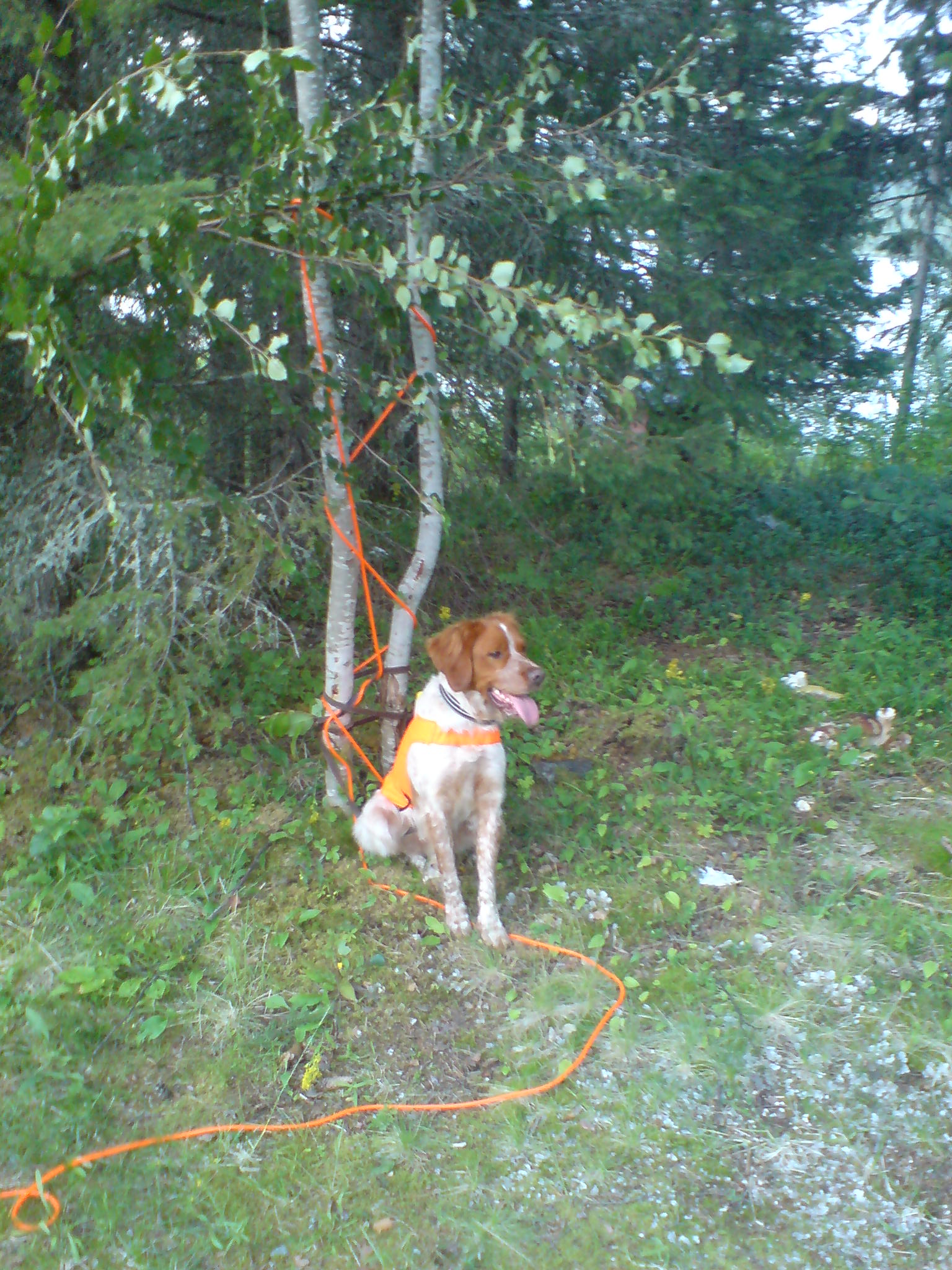 Publicerat Juli 31, 200916 yr Såhär ser det ut då en jaktgalen Breton fått lov och sitta fastbunden ett par minuter medan husse iordningsställer träningsfåglarna. Han såg inte vad som försiggick, dock rejält med vittring från rapphönorna. Notera långlinans lindning runt trädet....och det är inte Jag som snurrat linan typ 2 meter upp i trädet!! Lite het?