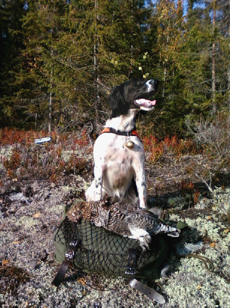 Publicerat Oktober 19, 200916 yr Kul Jimmy att du hade "turen" på din sida! Inte minst för hundarnas skull! Själv var vi steget efter hela jaktdagen... Ja i lördags lyckades man klämma in en jaktdag igen. Det har varit alldeles för lite jakt den här hösten, å nu när Troy börjar visa tendens till att börja fatta lite av vad en stående fågenhund ska göra å allt.... Nåja, lördagens vandringsstrapats gav dock inget med hem till köket, ej heller några fina fågelarbeten...en såndär otursdag helt enkelt. Ganska många uppflog av tjäder och orre dock. Men vi var alltid steget efter... Nu är iofs. fåglarna rätt lätta på vingarna då löven fallit, mossan frusit till skrap-före osv. Men det är i allafall väldigt roligt att se Troy äntligen börja sakta in vid fågellukt, står för riktigt färska uppflogsplatser osv...så det kommer tydligen. En rolig sak är också att han verkar lära sig att det inte är lönt att snurra tusen varv där det luktar fågel men inte finns nåt. Tidigare har han fastnat allt för länge vid gamla löpor osv. Jaktdagen bjöd också på ståndskall efter träad tjäder vid två tillfällen...jajjemen, av Troy! Den sista kom jag rätt nära och hade man haft en hund man inte ville lära ut dumheter hade jag nog kunnat fällt den tuppen! När fågeln lyfter från trädet så blir det ett eller två drevskall sen vänder Troy tillbaka och söker vidare. Rätt kul faktiskt! Torde växa bort med rutin antagligtvis... Man har ju lärt sig en rejäl läxa i allafall! Så lite motion och konditionsträning som jag gett min hund det här året ska han aldrig behöva få i framtiden... Det är tragiskt att se att han mattas av så pass snabbt i skogen och tillslut börjar lufsa omkring i gångtempo. Börjar fint med sök i 30 blås, men sen avtog det snabbt... Jagade tillsammans med kompisen och hade förmånen att få testa hans Garmin Astro på Troy. Det var rätt kul att se hur söket såg ut och vad han höll på med när han var borta en liten stund. Tidigare har man ju trott att han bara tokspringer och är borta från mig för att det är roligt att vara fri, men nu kunde man se att han hittat fågel och följt löpor.