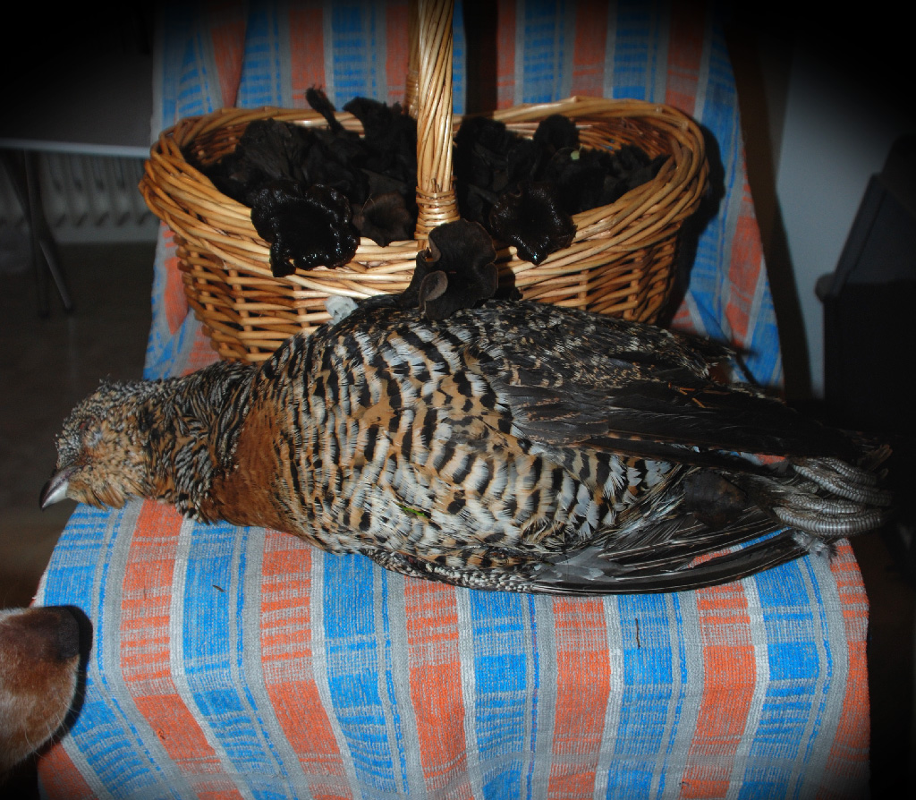 Publicerat Oktober 18, 200916 yr Författare Så har helgen bjudit på några riktiga pärlor. Primus har för första gången följt upp en löpa, efter fint revieringsarb. På slutet satt där en järpe på backen som flög upp 1-2m ifrån jycken nos. Såg de iaf ut som från mitt håll. Jag blåste omedelbart sitt. Zingo hade ju liasom förvarnat e de var nå på G så pipa fanns i mun. De märkliga i kråksången var att Primus vänder sig om o kollar lite förvånat på mig o funderar nog på varför husse såg så uppspelt ut. Jädrans till cool jycke tänker jag o släpper ut honom i sök igen. DÅ.... flyger fan in i han (känner vittringen på riktigt). Genast tar söket nya format o speeden går över till TURBO. Ser järpen dra iväg från träd längre bort så ja kallare in o e MKT nöjd med dagens övning. Ska väl tilläggas att järpen var fullt skjutbar båda gångerna men de kändes inte rätt så skott hölls inne. Efter ngr timmar får jyckarna vila o husse går på trumpetjakt med järppipa i högsta hugg. Hade inge cammokläder så de va kört från början o turen var mest en skördetur på Svart Trumpetsvamp. Bidde en hel kasse av detta svarta guld från skogen. Men en järpe svarade iaf men ja såg aldrig röken av den. Kan ju berott på att jag kolla ner på svampen Sen fick Zingo o jag beskåda en FIIIIN gammeltupp men tyvärr långt framför oss o i luften. Hade inte ens börjat släppa men jaktpulsen drog upp ngr slag extra. Hade ett fint arbete på fågel o ngr tomma. Sen kom snön. Vi bytte plats o började med att Primus fick söka lite. Men för att göra historien kort.... Sista metrarna bjöd på en riktigt rolig situation. Zingo står o jag avancerar men de mynnar inte ut i ngt. TROR jag. Hur jag sen ska bedömma denna situation får ja sova på men.... upp på vingar kommer en tjäder med Zingo i hälarna. Jasg sätter honom o skjuter tjädern som landar 1.5m snett bakom mig. En mkt förvånad Primus tittar storögt på mannan som föll från himlen o Zingo tänker fallapportera MEN....... de stod ju en sån därnia arg husse imellan honom o fågeln. Ble ju liasom många flugor i en smäll. Tjädern hjälpte till att trigga situationen ngt ytterligare genom att vinka adjö till skogen med ngr sista vingslag. Trodde knappt att jag skulle kunna ha Zingo kvar på plats utan att ta i med händer. Kanske för att Primus var mkt närmre fågeln som triggade fram detta beteende men OJ så kul att de ble just så. Hade haft ett otal perfekta orrarbeten för Zingo i kontorta men jag lyckades inte så mkt som se ett dun trots att jag kanske bara var 5-10m ifrån vissa flog. Så med en tjäder i påsen fick Primus äran att göra sista släppet till bilen. NÖjd o belåten med helgens bravader fick jag köra hem med många superba minnen på en väg som under em. skiftat till vitt. Gissa om jag kommer sova sött inatt //Jimmy En del av bytet. Gissa vems nyfikna nos!?!