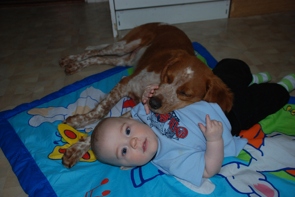 Publicerat Oktober 12, 200916 yr Hej, här kan man läsa att det går bra för dem flesta och att alla utvecklas:D Själv så har vi( jag och Loke) hunnit med en hel del. Det mesta går bra och vi är påväg framåt. Vi kör fortfarande mycket stadga, på kaniner och duver, har dock en bit kvar men är på god väg iaf. Dagen till ära så for vi förbi tjejens föräldrar och hälsade på. Deras granne har en kanin som rymt så den är även runt tjejens föräldras hus. Jag såg kaninen och tog Loke i koppel och vi tog en lov så att vi kom rätt i vind, på direkten fick han vittrningsstånd och stod finfint. Jag kommenderade "JA", och sen när kaninen rusade så fick han ett sitt, han satt sig ner klockrent. Måste säga att jag var riktigt nöjd med den situationen:D:D:D Men vi har otroligt mycket kvar att träna och lära men vi jobbar på, känns dock riktigt kul när man ser bit för bit börjar falla på plats:D Har för övrigt haft han i spårlina och haft med mig en skytt i skogen och hunden har spårat fram en hare(fick dock inte resa den själv, men sen när han fick syn på den att den sprang så fick han sitt kommando och sen var han lugn i skott, men ville dock gärna äta lite hare). Han har även visat fruktansvärt mycket intresse vid färska löpor på orre och tjäder, känns väldigt inspirerande och längtan tills nästa år då dressyren ska vara befäst ordentligt är olidlig...men men allt har sin tid. Var även med på inofficiell utställning igår, där han fick bir valp och hp i sin klass (det var dock bara han som var breton!), sen satt vi 4 timmar och väntade på best in show av alla valpar, men vi åkte ut direkt. Men vi fick bra träning av att bara vara där och husse har lärt sig att han mest troligen aldrig mer kommer att ställa sig i ringen igen(första och sista gången?), får nog bli någon som kan detta.