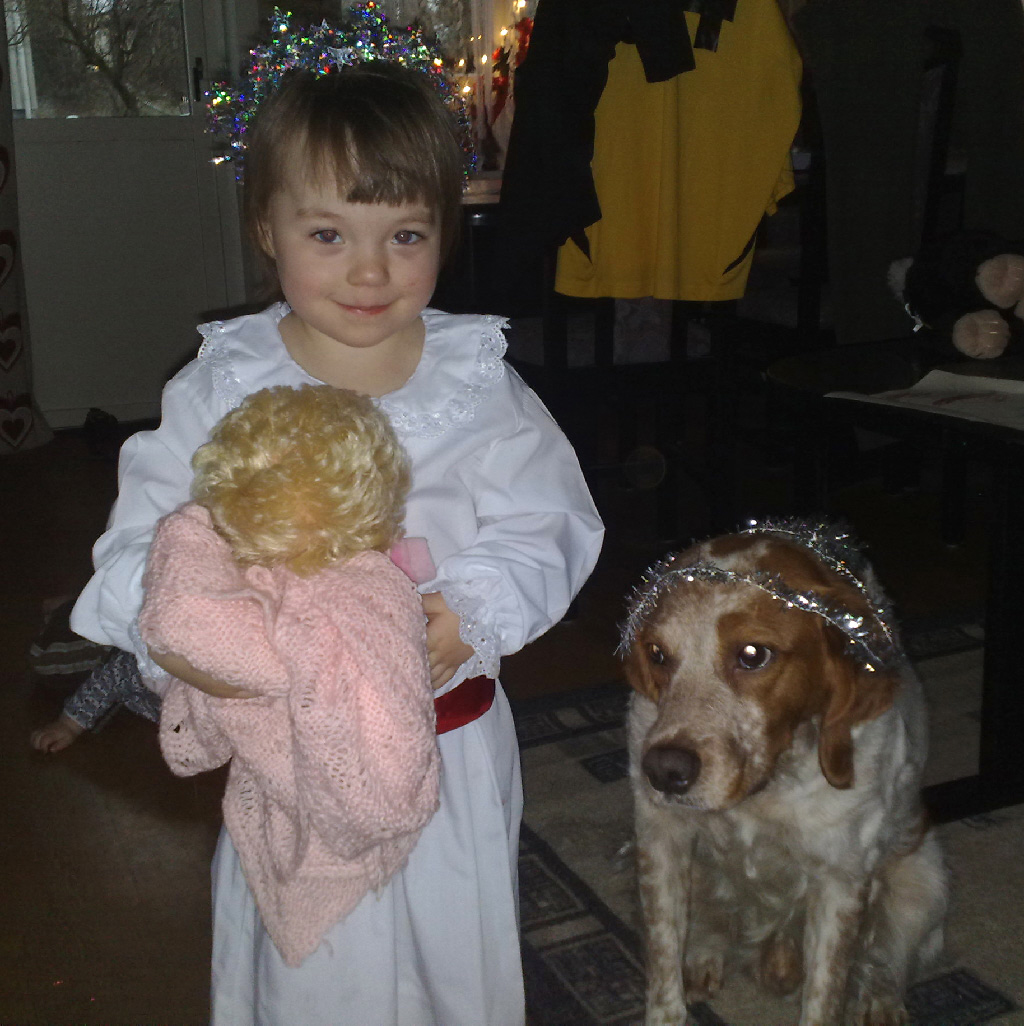 Publicerat December 23, 200916 yr God Jul och Gott Nytt År till Er alla från mig och min husse och matte. Mycket snö och kyla har varit tufft ett tag men räddning är på väg, vinteroverall i fleece säger matte. När det blir nytt år är jag fyra månader och då kommer kraven att öka säger husse, jag undrar vad han menar med det. Matte tänker börja fara omkring med mig på utställningar för att visa vad snygg jag är, men det vet jag ju redan, för det säger alla.