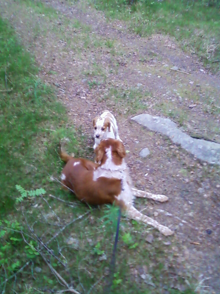 Publicerat Juni 9, 201114 yr Författare Primus fattade stånd häromdagen bak huset där de bara ska kissas. Trodde självklart att de låpg en katt där o schasade iväg jycken. Dan efter ser ja vad han stått för då kråkorna e urbota förbenade o attackerar oss. På ena sidan ligger grannens katt, andra sidan jag o Primus o mitten sitter en ej flygkunnig kråkunge. Tur att jycken fått lite kråkdäng, , så han nöp den inte! Var ut på en kvällspromenad i skog o mark med regionens nytillskott med husse. Senare fick även Primus följa med en sväng. Ingen av dem var still o endast telefon var med men.....