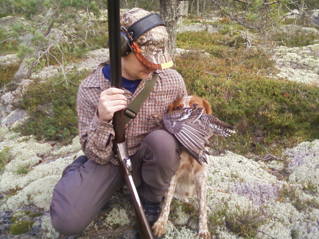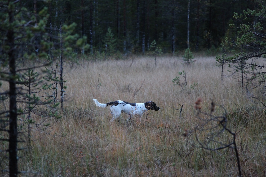Publicerat September 16, 201114 yr Har bott på jaktmarken snart en vecka nu och bla jagat älg, men kvällarna finns det gott om tid för att leta lite fågel med unghunden. Va ut ikväll och gick på lite orrkullar, första 2 blev han mest tokig att det luktade så gott att han glömde bort att fåglarna flög sin kos. När vi gick tillbaka mot bilen gick vi med vinden i ryggen och råkade stöta upp några kullar och den första rusade Mille iväg efter men kom ganska snabbt tillbaka. Nästa 3 kommande uppflog stannade han, inte riktigt sittande men typ lite på huk.... det fick räcka. Han har fått bättre sök och har väldigt bra kontakt. Han hade skött sig väldigt bra och husse är väldigt nöjd:-) så skönt att ha en lite semester och gott om tid för det som är skojj:-) /Johan Jäklar vad stilig bild johan. Börjar bli lite vuxna drag i Mille nu. Åker upp och gör lite gruvjobb nästa vecka men när jag är tillbaka måste vi nog släppa mille på ripkullarna på vår mark.