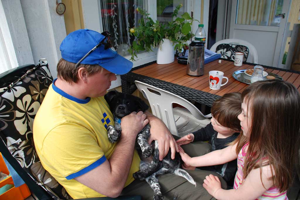 Publicerat Juni 11, 201213 yr Författare Äntligen!!!..... Kom en av Primus avkommor på besök. Närmre bestämt Riekoalbuksens Demo "Gibbs" 13v gammal, tillika JoPe:s hund Självklart ville man ju kolla närmre vad jycken nedärvt för gener o han var far sin upp i dagen, med en liten extra stjärna i kanten En mkt trevlig stund som gjorde att jag nu vet att ska de bli valp blir det efter Primus! Familjen var helt enig trots att valpar e lite bitiga