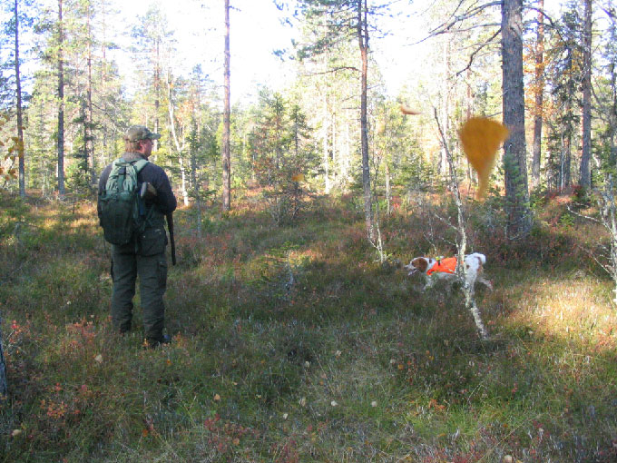 Publicerat Oktober 14, 200718 yr Författare Eftersom de flesta kandidater till Jaktsidans träff i klimpfjäll trilla av en efter en så la jag o Christer en egen träff där åtm han fick se en Breton jobba på hög nivå. Platsen blev istället Christers egna jaktmarker. [glow=red,2,300]Tyvärr blev de ju inga älgapporter mm som lovats. Hade sett fram emot de [/glow] Men för de går de fler tåg ;D ;D ;D Får väl se om vi eller åtm Zingo fastna på bild o ev hamnar i ett framtida reportage för "Jakmarker & Fiskevatten" Tyckte hunden jobba mkt bra me tanke på att vi hade nästintill vindstilla. Ändå fatta han stånd på stånd på ripkullar (o singelripor). Men skogens ripor låter sig inte lika lätt luras som de på fjället. De har lärt sig att hålla sig där de int går o skjuta alltför lätt. En fick dock bita i myllan. Men de va magert resultat me tanke på alla finfina jobb Zingo prestera samt all fågel vi fick se. Fel på bössa o ammo tror ja! : Hade nu Vorsteh, Setter o Pointer mfl dykt upp had e de fått storstryk på fågel. Inte en stöt eller eftergång. Förutom då husse får elavbrott i hjärnan o skriker JAAA i skottet när han mena sitt. Gissa vem som blev lycklig o löd ögonaböj. : :- Bom dessutom! De e mänskligt att fela, åtm då JAG gör de Hoppas C:L kan så smått bevittna mina skrönors äkthet framöver ;D ;D ;D Nu e ja så trött att öjona håller på o trilla igen. En glad lycklig husse går nu drömmar till mötes om hur vi ska överlista dessa skogsripor, för de var ngt av de roligaste jag jagat. Trycker bra för hunden o bjuder på svåra knepiga jaktsituationer. Tack Christer för en trevlig helg!