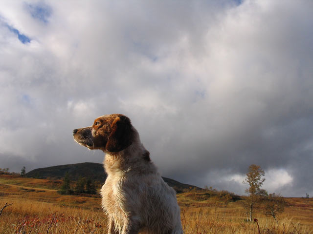 Publicerat September 25, 200619 yr Författare Fantastiskt hur en hund kan ha flera utryck ;D ;D ;D Skämt åsido. Två heldagar o en riptupp var allt. Sista timmen dessutom. Tyvärr låg den där Zingo sprang ner för en mindre klipphäll o PRECIS när Zingo känner den o föröker stanna går den upp en 1/2m framför honom. Men han var åtm lugn i flog (o jäkligt förvånad liksom husse) Så nu har han lärt sig att både ställa o avancera alla flygfä som kan finnas på ett fjäll Finns de inte ripa tar man väl den fågel som finns tyckte ZINGO. Men vi fick motion o öva mer på reviering. Funka fint men så fort han får chansen blir de utstick på ngr hundra meter. De possitiva är att han lystrar till komandon därute nu iaf. Så de va bara att ta tillbaks honom All erfarenhet är väl bra erfarenhet???? Ett par fjällbilder ble de ju dessutom