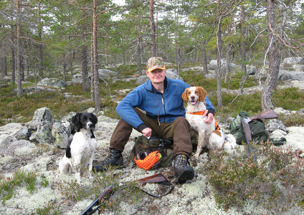Publicerat September 14, 200817 yr I fredags sköts första ripan efter Cobra!!! Resning saknades dock, men hon har sökt så fint senaste tiden att jag bestämt mig för att så fort hon står då smäller de om de flyger. Hon sökte riktigt fint denna dag också och de lätta några fåglar ur träd, inte lätt för en liten Cobra även om hon markerade att de var fågel. Sedan så ställer hon sig helt plötsligt mot en gran i kanten av en myr. Jag berömmer henne för jag vet att det ska finnas ripor i området (Ella hade tidigare haft ett fint arbete på kullen) och efter kanske 7sekunder smiter en ripa ut från granen. Var säkert mitt snack som fick den på vingar, men pang å så damp den i backen. När den lättade ville Cobra efter men satte sig på signal och pang är ju också sitt för henne så hon satt lugnt kvar även om hon såg att ripan föll. Snacka om att jag var glad! Dock ska jag ju villigt erkänna att jag hade tur som var i närheten och hann berömma annars vet man aldrig om hon hunnit komma på att hon skulle ta ännu nått steg framåt vilket skulle ha resulterat i stöt. Har blivit så några gånger att hon markerat att det luktat gott men tagit de där stegen extra. Senare på dagen så hade jag min gamling på "rymmen" och var lite förgrymmad så Cobra fick söka. Vi var rätt nära bilen så jag gick upp på grusvägen för att lyssna efter rymlingen och slippa gå i riset. Tänkte att Cobra får vara där nere själv och kolla av. När jag står med ryggen mot riset hör jag hur det börjar kackla.....kollar dit.....ser ingen hund.......två ripor lättar ...ser fortfarande ingen Cobra....... blåser för säkerhets skull i pipan ifall att hon har varit i närheten av fåglarna eller sett dem så ska hon då få sittsignal. Står ett tag och kollar men ser fortfarande ingen Cobra. Cobra får nämligen inte resa sig från sitt utan att jag kommer till henne först. Kallar aldrig in henne från sitt. Jag går och letar i riset men ser fortfarande ingen Cobra. Tillslut inser jag att jag måste kalla in henne för jag hade ingen susning om var hon var. Efter inkallningssignal så börjar det prassla mitt i riset och ut kommer en helnöjd liten Cobra. Vad som hände där inne i riset har jag egentligen ingen aning om för jag var lite ouppmärksam men antingen så stod hon för riporna och dom smet varav hon satte sig eller så stötte hon och satte sig pga att dom flög. Sedan är det mycket möjligt att hon kan ha blivit less på att sitta och lagt sig ner och tuggat på nått grässtrå varför jag inte såg skymten av henne i riset. Iaf så var jag väldigt nöjd över lillkickan. Den gamla däremot måste ha ätit några ego tabletter inför denna höst. Hon jagar inte riktigt som hon brukar, är betydligt mer självständig än vanligt. Jag skyller på att livmoderoperationen ändrat henne lite och kanske de faktum att hon fått konkurrans i skogen och inte får jaga 100% av tiden, men det är säkert bara nå skit hon lagt sig till med på äldre dar Hon är dock grym på finna fågel men hennes metoder att finna dem är vi inte alltid överens om...... å finns fåglarna inte i närheten går vi dit dom är oavsett avstånd eller terräng..... I lördags hörde jag hur hon började dra iväg och visslade (hon ignorerade) jag visslade igen och hör då hur hon säkert 200m bort ställer sig och vet att damen står där tills vi kommer fram eller fåglarna smiter. Vi konstaterar att hon har gått ca 200m från oss i medvind och hittat fågel. Hon driver med oss var de vi konstaterade.....nädå hon stog stenhårt så det var bara till att bege sig nerför knabben. När vi kommer fram så lättar en orrhöna framför henne. Hunden står fortfarande i medvind utifrån var hönan låg!!! Fattar inte hur hon kan känna dem??? Måste ju vara nå virvlar eller nått som virvlar upp lukten Iaf så är det inte första gången det händer. Envis som en åsna är hon min gamla jaktidiot, så jag måste säkert läsa den stående fågelhundens grundreglar någon fler gång för henne under hösten