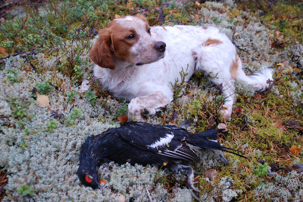 Publicerat Oktober 7, 200817 yr Jahapp, då var man hemma efter en helg i fjällvärlden. Åkte upp fredag, jagade lördag och söndag och hemresa på måndag. Lördagen bjöd på hyfsat väder. Lämplig vind och ingen nämnvärd nederbörd. Söndagen bjöd på sämsta tänkbara jaktväder. Blåste satan och regnblandad snö. Vid lunchtid så började vi prata om att gå närmaste vägen hem igen! Gamla halvruttna fjällbjörkar blåste av till höger och vänster..det var inte direkt kul! Med bara ögonen och näsan framme ur den åtdragna kapuschongen så var ju chansen inte direkt stor att man kunde sänka eventuellt uppflygande fåglar...hehe. De ripor vi såg lättade på alldeles för långt avstånd, de gav oss ingen chans alls. Däremot såg vi flera tjädrar som kanske hade varit skjutbara om man varit mera alert. Vi jagade med kompisens pointer och Troy skulle få följa med och testa lyckan. Till en början fick de jaga var för sig, men rätt snart testades parsläpp. Troy skulle givetvis busa å hänga på pointern första tiden, men började så småningom att jaga av marken mera självständigt. Efter ett tag så gick det rätt hyfsat att ha dem i sök tillsammans. Det är ju inte alltid lätt att styra dem dit man själv vill. Men å andra sidan så ska man väl lita på deras nosar också har det visat sig.... Troy har gått fint hela helgen. Jag tycker han söker av terrängen rätt lugnt och sansat. Visst....mer rutin kanske gör att han inte går på samma ställe mer än en gång, men det kommer väl kanske med vanan. Men han är rätt noga och lämnar inte speciellt stora områden ogenomsökta. Han revierade hyfsat och gick inte så stort som jag trodde han skulle göra. Jag tänkte att jag skulle släppa honom 15-20minuter och sen vila lite, för att sen släppa ut igen. Men han har fanimej ingen ro i kroppen! Det slutade med att han jagade typ hela lördagen, men lite vila på lunchen (då jag knöt fast han för att varva ner). På söndagen var han lite mera trött, han gick inte ut fullt lika långt, med hade fortfarande ingen ro att varva ner och fick bindas under lunchen igen! Energisk är nog en rätt bra sammanfattning på Troy ändå...hehe! På söndagen så sprang han rätt in i några ripor i medvind, men det blev inte nån större förföljelsemani, utan han fortsatte söka som om han ville finna fler. Hade det funnits mer fågel och vädret varit bättre hade man haft större chans att se om han börjar stå för fågel. Hittills i år tycker jag alla fåglar man stött på är jävligt rädda av sig. De lättar på toklångt avstånd och drar iväg kilometervis! Nu när lövfällningen är i full gång så lär det inte bli bättre!! Nåja, det är bara ut mera här hemma och hoppas på att det dyker upp fler fågelkontakter. Han är ju iofs. bara 10mån, så jag har ju inga krav på honom än egentligen vad gäller jakten. Men det vore ju kul om man kunde få börja se att han stannar till och blir lite ståndfast för fågelvittringen. Vi får väl se om man ska investera i lite rapphöns nästa år...det kanske betalar igen sig! /Henke