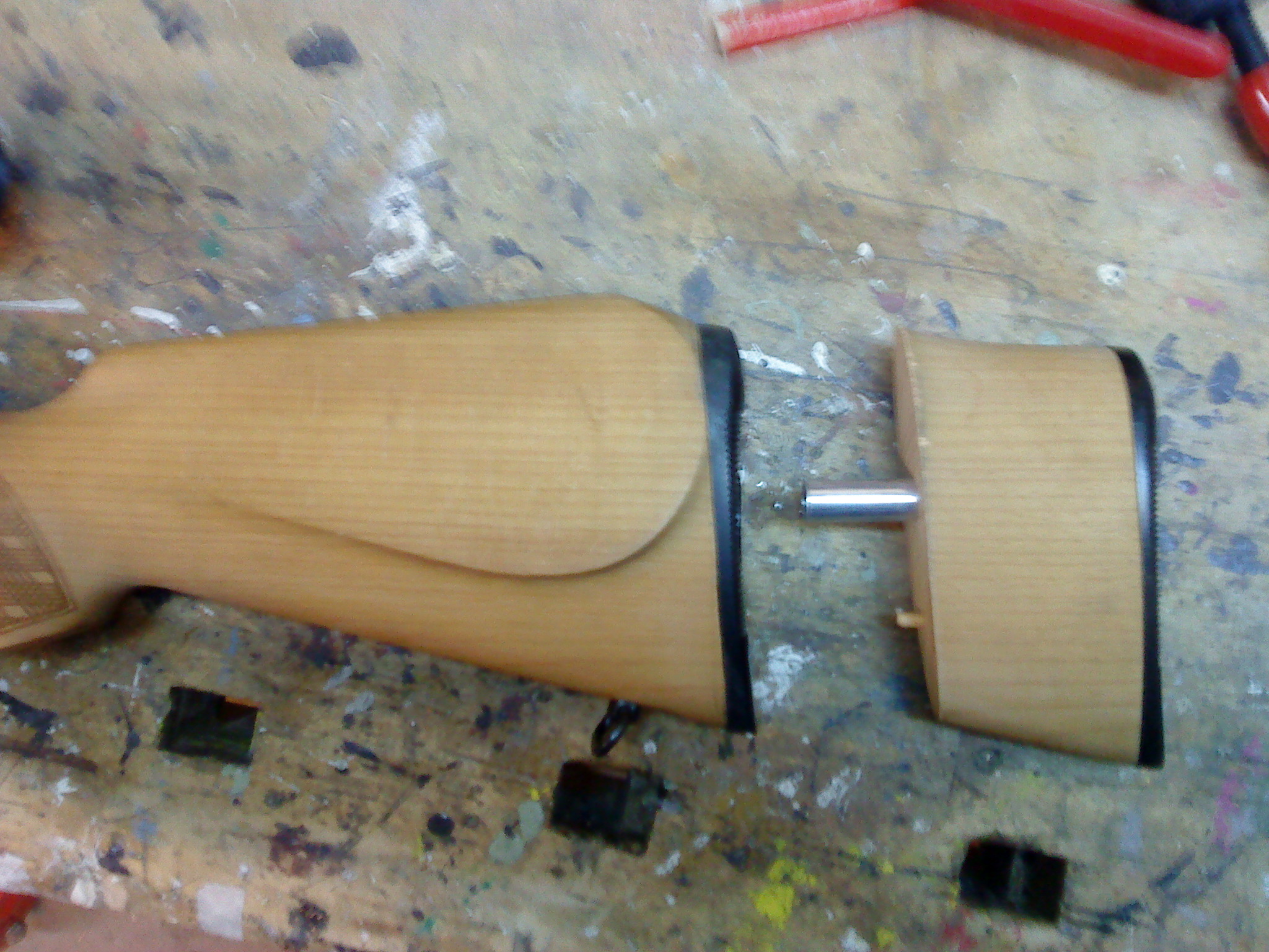 Publicerat April 20, 200917 yr När jag i går var på skjutbanan med barnen så hade vi det väldigt trevligt och barnen tycker det är skitkul. MEN, min 22a är ju naturliogtvis stockad för vuxna och till råga på allt så har jag tryckt på en pipvikt på 400g för att den inte ska bli så "vispig" att skjuta med Barnen hade stora problem att hålla upp bössan och kolven stack de in under armen. Då började tankarna mala och i kväll har jag ägnat 2 timmar i verkstan åt detta delikata problem Lösningen blev: Steg 1 : bort med pipvikten steg 2 : kapa pipan till 45,5 cm, den var inte särskilt lång från början så det försvann bara 8 cm. steg 3 : kapa stocken men fixa någon form av enkel bajonettfattning som gör att jag kan sätta tillbaka den kapade biten Resultatet blev en 88 cm kort 22long Här har jag kapat stocken, filat till en gammal bakelitbakkappa så att den passar någorlunda på den korta stocken. Om man lossar den med 2 skruvar kan man trycka dit resten at stocken som nu är en förlängning. Den sitter stadigt med ett 12mm aluminiumrör och en liten styrtapp av 4mm rundstav. Hela bössan blev kanska kul, pytteliten och lätt, hoppas det blir lättare för barnen nu att vara med och skjuta på riktigt. När jag vill mängdträna på korta älgbanan sätter jag på pipvikt och stockände så är den i stort sett som förut. Det är ingen vidare finish på detta arbetet men det ska bara funka. Det är en gammal HDF 22a jag köpt för 1000 spänn med med en 3-9x mirokukikare på. Vill jag ha en häftigare 22a så kan jag utan dåligt samvete kassera den hos vapenhandlarn.