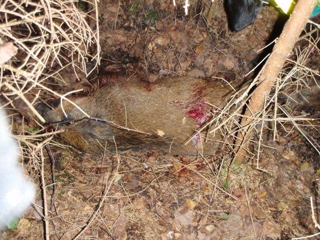 Publicerat Juli 29, 200916 yr Brodern ringde lite lätt stirrig.. Han hade skjutit på en kulting som trillade dit i skottet låg o sprattlade. När så resten av flocken 2 suggor o ett 10 tal kultingar sprang förbi den som låg så hoppade den upp och hängde på övriga. Är den 10:onde grisen på ett par veckor vi skjuter hos samma bonde. Nu var det i hagen med kalvar vilket skulle det visa sig va lite läskigt för Blackie. Idiothund… suck.. Kom i alla fall dit o tog jycken i spårlinan o gick in i hagen, brodern stod där o 15 dumma kalvar… De tyckte Blackie va läskigt… Vrålade som faen o höll på o glodde på kalvhögen.. Gick fram där han hittat blod, såg ut som vanligt muskelblod. Efter mycket vrål o dragande i linan mot kalvarna så kom vi av hagen där samtliga grisar gått in i planteringen. Skönt… Såg några blodstänk o då rusade jycken framåt någon m o jag kopplade loss direkt. Ut mot hagen o fullt ståndskall iofs precis vid staketet… några m bort. Vrålade på hundj….len.. Hon kom tillbaka som väl va utan att ställa till allt för mycket dumt. På med linan igen men nu visste jag iofs inte om vi stod på löpan men lät galningen spåra vidare. Vilket hon gjorde bra men man undrar ju om hon sållar ut den skadade eller hänger den med flocken än. Efter kanske 100 m så sätter hon sig, sen rusar hon o far omkring o jag kopplar loss o så går tåget... Plockar ner spårlina o halsband i västen o hänger efter. Hinner precis se en större blodfläck under en granruska. Troligen sårlegan. Kollar pejlen o ser att jycken inte är så långt bort o verkar stå still. Sätter lite fart på benen, vid nästa koll på pejlen så ser jag att det garanterat står still. Är framme hos jycken ganska omgående. Har väl 5 m till henne då jag SMSar min position o anger vart brodern ska ställa sig. Sista biten är jag tvungen till o krypa in, jycken vrålar på ordentligt. Hon kan inte vara mer än nån m från grisen. Nu vet jag ju att den ska vara liten kulting men fasen.. folk har tagit fel förr… Får en liten gata längs med marken där jag ser några meter fram o förstår på hunden att grisen måste vara i den riktningen. När jycken flyttar sig nån m i sida så tänder jag vapenlampan o ser rödbrunt hår, dra på en smäll o kultingen blir kvar men hade tydligen skjutit av ländryggen. Fick sticka den också. Drar grisen rakt ur tätningen o där står brodern rakt i riktning där jag skickat en kula strax innan. Faen va nära du va då säger han… För H-vete du ska inte va här försöker jag förklarar men stirrig som han är o när han går in i den fasen så vet jag faktiskt inte om han fattade de allvarliga i situationen. Får ta det i morgon när han lugnat ner sig…. Blev trotts allt lite besviken på hunden… Den storleken på kulting tycker jag att hunden ska ta själv. Men det kanske kommer… hon är ju ung än. Astro info, skottplats nånstans vid krysset o legan vid pilen. Mitt något felplacerade skott… Broderns skott högt i frambenet inom den blå ringen. Det andra är stirrig broders sätt o fläka upp hela grisen för o ta ur…