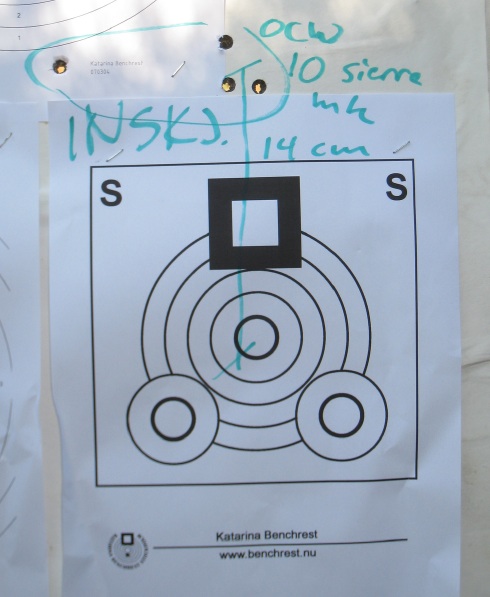 Publicerat Augusti 8, 200916 yr OK, men min nya Remington verkar skjuta bra i alla fall. Den gillar normalladdade 150 gr Berger riktigt bra som vi skall få se, och verkar hålla ihop Sierra Match Kung 150gr om man gör laddningarna lite hetare. 168gr Hornady Interbond rockar de också, det är kul. Men så är det detta med sidvinden... Det var vindstilla, men varmt som fan. Kunde konstatera att rte laddningar gick otäckt bra. Men sedan började det blåsa men jag tänkte "äh vad fan" och sköt som jag gjorde i de tidigare skotten.... Dum idé. Samtliga sista skott gled iväg åt vänster (jag sköt "round robin" det vill säga ett skott från varje laddning per tavla, så samtliga sista skott sköts i denna senare, otäcka, vind. Häftig känsla dock, jag kan se kulhålen med mitt kikarsikte och det var rätt häftigt att se fram till sista skottet i varje serie... Slutsatsen av dessa fyrskottare från 300-metersvallen (benstöd och sandsäck bak) är att bössan skjuter bra men att skytten bör träna på detta med vind en smula... Detta var Bergerkulorna, 42gr Norma 202. De tre första var på 28mm, med den fjärde i sidvind blev det 50. Och detta var Bergerkulorna, 42,4 gr Norma 202. Samma laddning, som sköt 10mm på 100m i den enda treskottare jag annars provat med den laddningen. Dessa har potential. De tre första var på 24mm, med den fjärde i sidvind blev det 55. Slutligen, Sierra Match King, 44gr Norma 202. Ser vi mönstret??? Om det bara är vindstilla någon jäkla gång så skall jag ge MrMauser en match Skämt åsido, nu har jag prylar som fungerar och skjuter tätt, nu vore man nöjd om detta vore grannforumet. Detta är dock Jaktsidan och således är nästa steg att veta VAR dessa träffbilder hamnar, att de facto träffa det jag siktar på ;-) Återkommer...