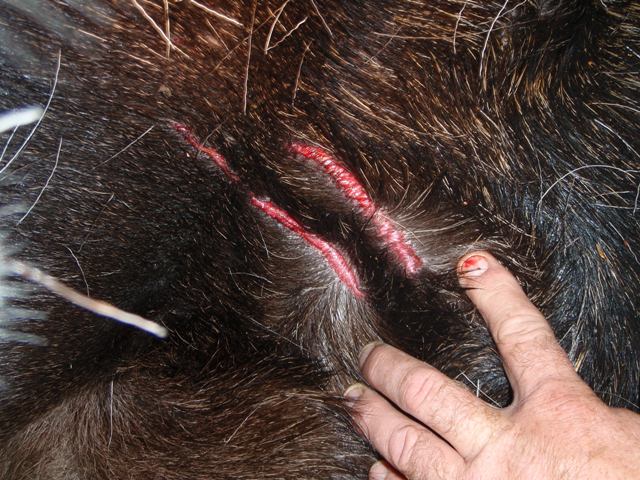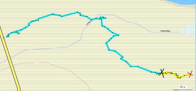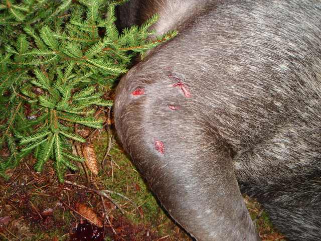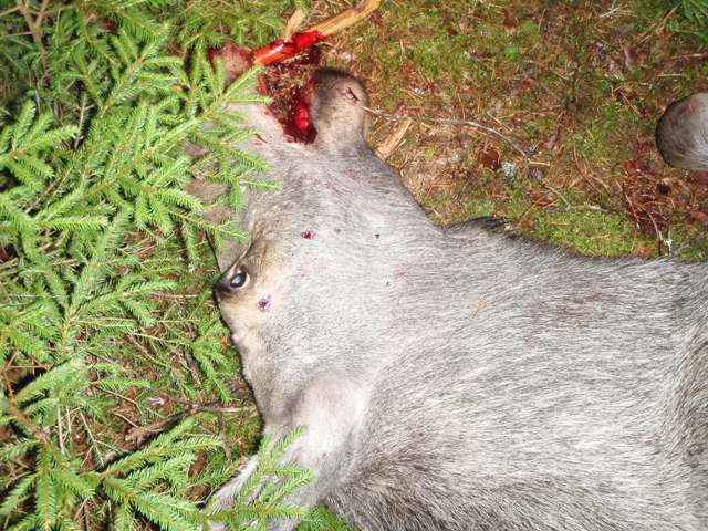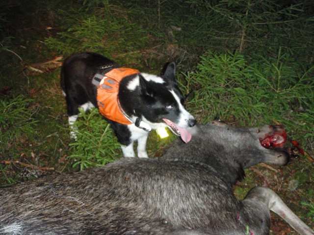 Publicerat Augusti 13, 200916 yr Påkörd norr om byn på 28an. Tysk kvinna som kört på. "Snuddat" älgen o platsen va utmärkt va den enda infon. Det var jakträttsinnehavaren som ringde o behövde nån hund. Svärfar till Flatcoat här på forumet Ställande är ju tvingande nödvändigt så jag ringde polaren med Karelaren Tuffe. Vi va där 30 min senare, hittade lite plastdetaljer från bilen i diket. Vi hittade inget blod varken på vägen eller i spåret. Tuffe sätts på spåret o han är rejält taggad. När vi kommit av vägen så släpps han ganska snart. 300 m bort fågelvägen så hör vi skall, kollar Astron o ser att det är stilla. Vi har rent ut sagt skitvind, men alternativet att gå runt gör att risken att det går ut över 28an igen om vi stöter o det känns inge bra. Rätt mycket trafik hör vi hela tiden. Vi gör en mindre sidoförflyttning för att komma lite i sidvind iallafall. Kommer in nära o hör dunsar i marken, klapper från klövarna på älgen. Verkar göra utfall. Vi har nu släkt lamporna men när jycken retirerar ända fram till oss o det dundrar i marken.. faen trodde vi skulle bli kullsprungna. Vi tänder upp o avancerar några meter o ser att älgen drar iväg. Vi kutar efter o får skottläge lite längre fram i storskog. Jag mitt dumma nöt hade i mörkret tydligen vridit upp förstoringen till 4 o inte ner till 1,25 som jag trodde. Gjorde att jag inte såg så mycket mer än örat, lite av halsen o halva mulen. Hållet va kort men Jacob sa skjut så jag pangade o så va det tänkt att älgen skulle rasa ihop.. Närå hon sprang... va FN. 50 m längre fram så går hon ner o Jacob får läge o ger henne en smäll till. Nope hon ville inte ge upp så hon fick en till av mig. Hmm... jo vi sköt illa de är ju bara o konstatera när man ser hålen i skallen som ju inte sitter där de ska.... Astrop info. blå sträcka=löpan fram till kontakt svart kryss ca 700m. Gulsträcka=stånd, gångstånd o där hon föll rött kryss. Lite skrubbsår. Verkade va inre skador, blod i bukhålan när vi tog ur. Såg ut som levern va spräckt. O här har vi Tuffe med sin älg som han jobbade med i 45 min innan vi kom till skott.