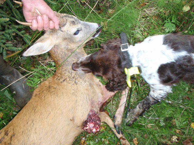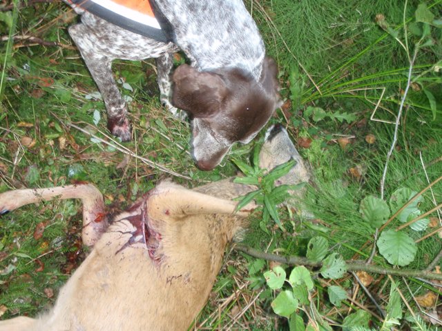 Publicerat Augusti 21, 200916 yr Författare Va alltså på andjakt på Öland i morse. Sköt lite ankor o tiken apporterade bra.. Förutom att hon knallapporterar, jagade harar o hade väldigt kul.. Får väl skylla på att de blåste friskt så hon hörde mig nog inte hela tiden… 2-3 änder hade vi ju aldrig hittat utan hund, därav tänkte jag att den delen kunde ju passa här i eftersöksarean. Vid 5.30 ringer mobilen o de va visst en gris påkörd, de ville ha lite hjälp men jag avböjde o rekommenderade annan kille som spårade rätt på grisen som låg död. Jag har ju en 10 mil hem eller nått. 07.04 ringer det igen o det är en kille som ringer från Danmark. Han hade kompisar som jagade sydväst om där jag huserar. Hjälpte dem med en gris för nått år sen. Kände att jag inte kunde bryta andjakten då men va iofs nästan på väg hem. Skickade dem till en polare som fixade den biten. Bocken va visst buksjuten sent igår kväll. Lite strul där för de hade lullat omkring en del på skottplatsen och förmodligen fått vom på skorna o sabbat spåret men det reddes ut av den wachteln. Hur god den bukskjutna bocken är i grytan kan man ju fundera på…. Så ringer mobben igen…. 07.20. En kille jag brukar hjälpa när det skiter sig. Han hade benskjutit en bock vid 06.00. Ringer polaren men korthårsvorthern Gazza, gammal är hon men än kan hon jobbet. Min Wachtel Alice hade ju varit igång sen 03.30 o donat… Kan va bra o ha en utvilad hund på benskjutet. Satte Alice på spåret, hittade rörben längs löpan. Chrille med Gazza gick 15m bakom ihop med skytten, bägge utan vapen. Jag hade ”tjugan” i näven. Spårandet gick bra o vi kom av hygget o in i ett kärr. 50 m in så far bocken upp 1 m till vänster om mig, svingar med o bocken sticker rakt bakåt mot Chrille, hund o skytt, jag ser dem inte då men vet att de är bakom de där buskarna i mina spår. Går ju lixom inte skjuta då… Efter 15 m så vinklar bocken 90 grader ut från killarna o precis när den ska försvinna ur synhåll för mig så sveper jag ifatt med pangen o släpper en tjuga 3:or. Ser inte om det tar men då släpper chrille Gazza som har bocken direkt i strupen. Alice är framme i spårlinan o får lugga lite också. Jag är ju där också o stack bocken tvärt. Enl Chrille så gick bocken omkull i smällen men levde men kom ju ingenstans för då va Gazza o sen Alice på plats. Den bocken gick ca 150 m från skottplats. Sköt att allt flöt på så bra på alla håll för en gång skull.