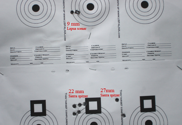 Patronerna var laddade med 70 grains Nosler BT till ca 1040 m/s.