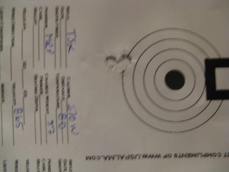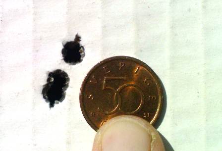 Publicerat December 21, 200817 yr Här kommer några till "Sakoträffbilder". Först ut Sako Classic 270W med TSX 150gr med 57gr MRP bakom avstånd 80m: /Peter