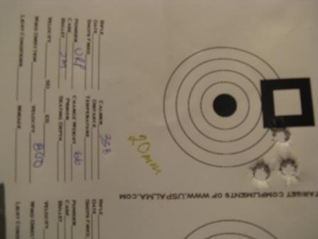 Publicerat December 21, 200817 yr Författare Och här var kontrollskjutningen med min Sako L691 custom 9,3x62 och en Z 1,5-6x42.