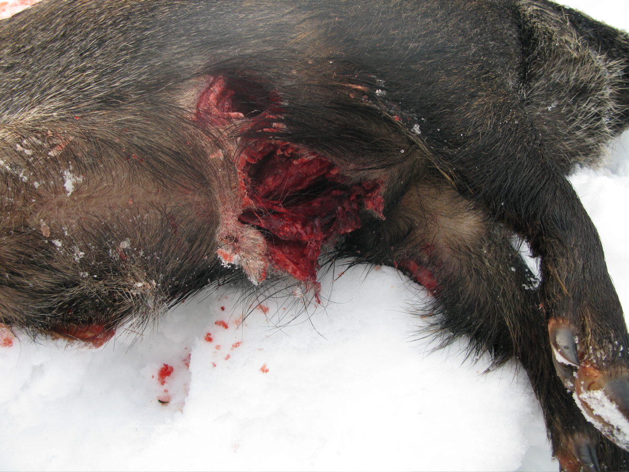 Publicerat Januari 4, 201016 yr Kul att du börjar skriva om dina eftersök Torkel. Lite svårt att se på bilden men är det diafragman man ser eller är det lungorna? Helt otroligt att den inte dränerats på blod helt, alternativt att den frös ihjäl i sårlegan, det är ju öppet rätt in till de röda organen.