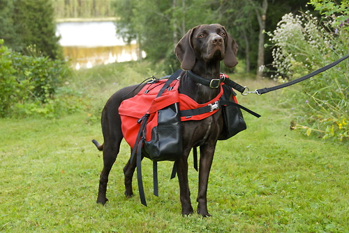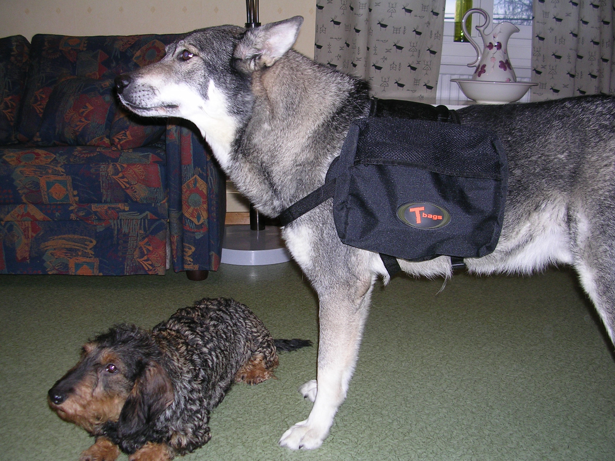 Publicerat Januari 21, 201016 yr Den där såg suverän ut. Vad tyckte hunden om den? Först hade jag tänkt mig en mindre version för mer smidighet men denna modellen också passar till dem långa dagarna i skogen. Hon har inga problem att ha den på sig. Enda jag kan klaga på är att om man spänner bandet under magen mellan själva väskorna så kan frambenen ibland ta i (misstänker jag, svårt att se) när man börjar hålla en högre takt. Jag ska ev. sy om detta lite. Bifogat en bild där hon har den på sig. Där har den dock hamnat lite på sniskan, fylld med skräp för att den skulle se bra ut! Annars sitter den riktigt bra och är lätt att få välbalanserad tycker jag. Fint är också banden på utsidan av väskan som gör att man kan spänna ut väskdelarna lite vilket gör att de inte tar i frambenen om väskan är tungt packad.