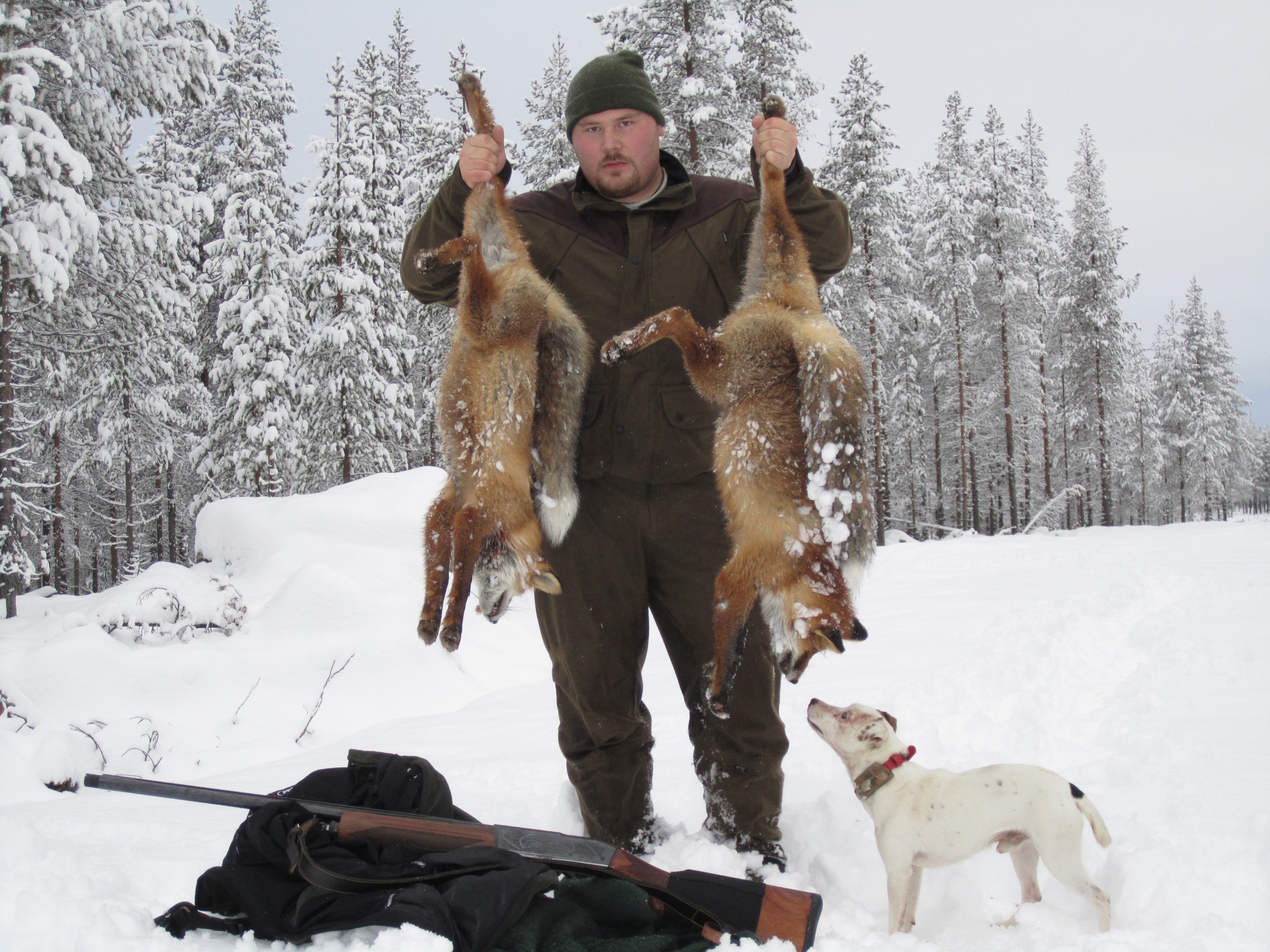 Publicerat Oktober 15, 201015 yr En uppdatering på den den bommade räven. Såg den komma haltande ute på fältet nu vid 16 tiden på väg mot vårat hus. Gick in och hämtade bössan ifall att man kunde få tag på den. När jag kom ut hade den gått upp mot skogen bakom en stor lada precis bredvid oss, jaha, det var den chansen tänkte jag, men chansade och skulle gå runt hörnet och kolla. Där, med fin bredsida på 50m framför en gran stod den snällt och väntade, gjorde ingen ansatts till att gå undan utan stod snällt och väntade. Fick den med ett bra skott och den föll på stället. Den var avmagrad, luktade illa och hade ett varigt sår i ena ljumsken, känns skönt att jag fick tag på den så den slapp lida mer.
