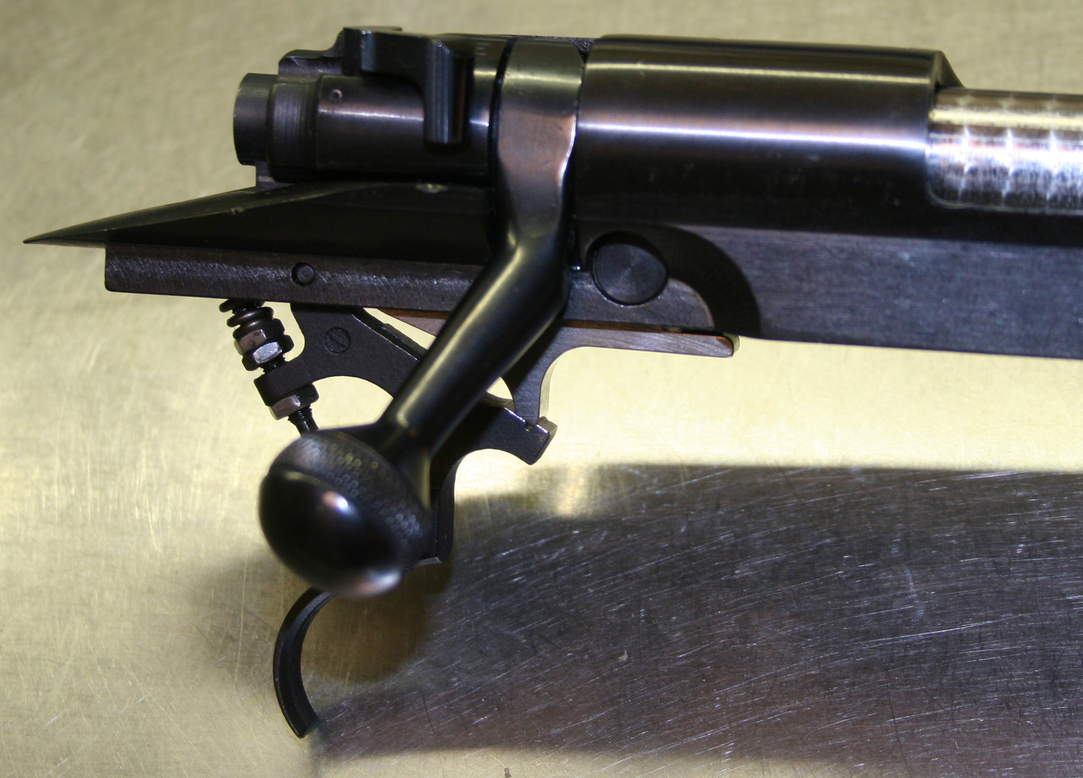Publicerat Mars 30, 201016 yr Författare Glömde en sista sak...Testa alltid trycket efter justering genom en bra smäll mot bakkappan eller liknande, låta den studsa lite lagomt hårt mot en gummiplatta på golvet är heller inte fel. Du ser snart om du vart för våghalsig och ställt trycket för lågt. OK Först och främst: stort tack för hjälpen Robban Eftersom jag är en smått otälig själ så kunde jag ju inte låta bli trycket Det är nu justerat till 1,2kg Det var bra mycket tyngre innan men jag mätte inte exakt, jag gissar på runt 2kg. Förut så kändes avtrycket helt direkt men nu när det är lättare så känner man att avtryckaren släpper efter en mm innan det smäller, alltså ingen glasstav. Men jag kan inte riktigt se hur jag ska göra det utan att slipa ner den lilla haken på avtryckaren och det vill jag inte ge mig på, det känns lite för vågat, marginalerna är inte stora här. Jag har oljat så lite jag kunde men ändå för att få en tunn film i stort sett överallt.