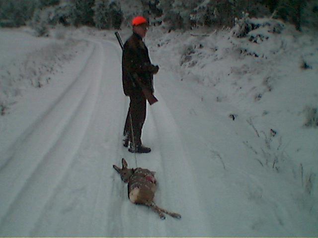 Publicerat Januari 6, 200620 yr Ännu en dag i Rydaskogen det blev ett rådjurskid för ronnys hund Trigger Dom for förbi mig med en väldig fart precis efter upptag, så jag ropade på radion till farsgubben att passa upp för nu är dom på gång. En minut senare så small det hos farsgubben. Här är några bilder från dagen. Mvh. Dr:Tore