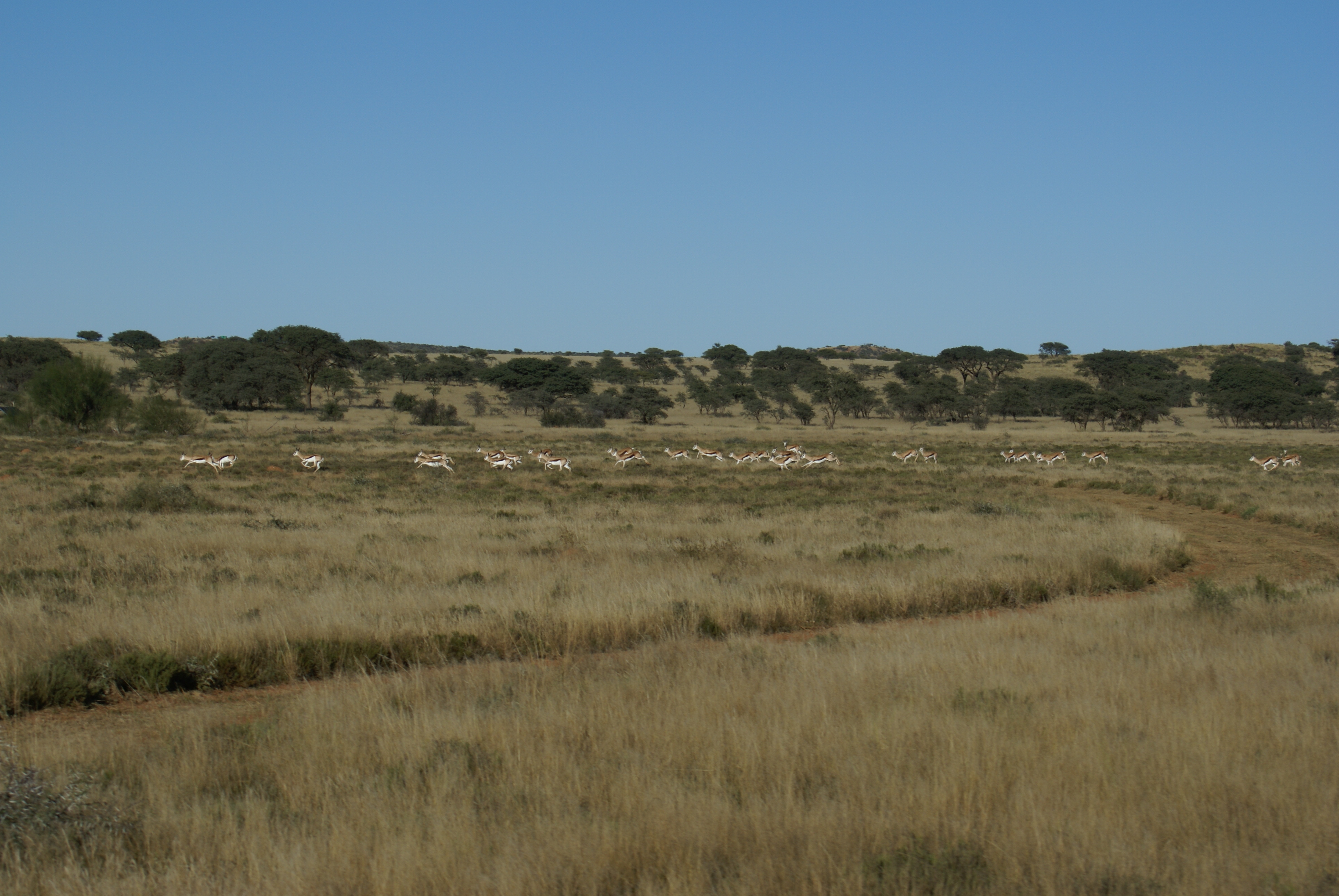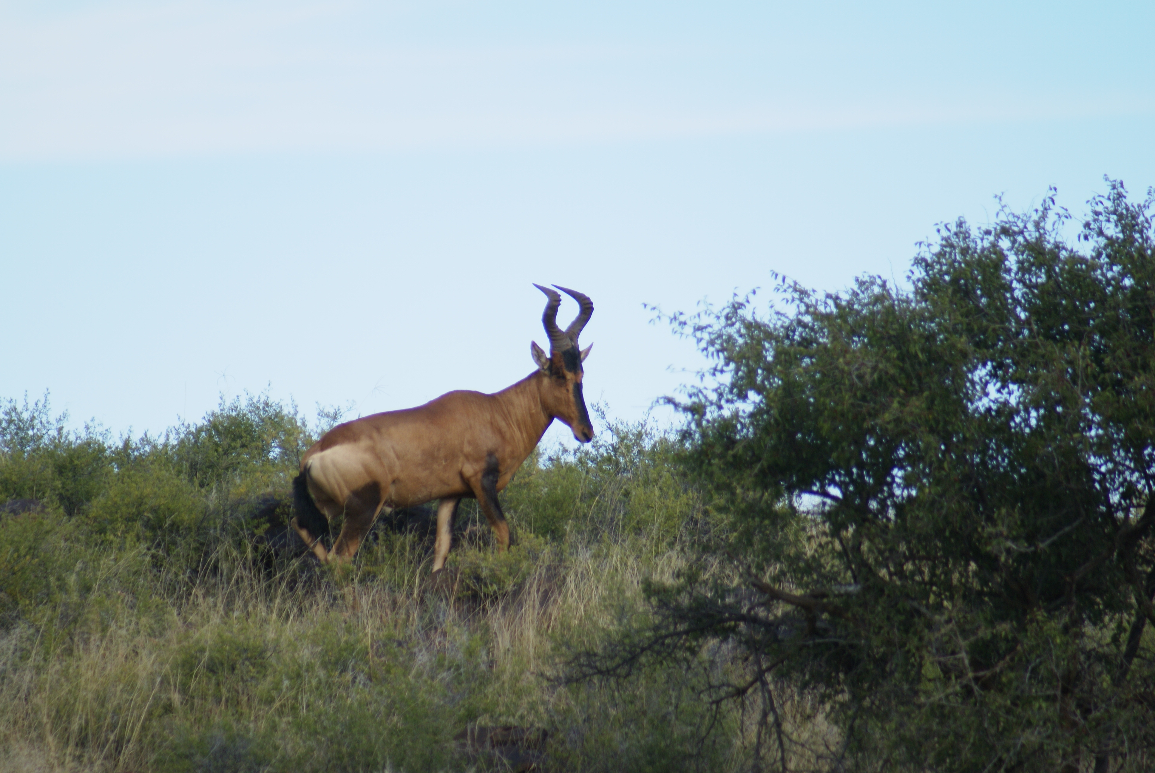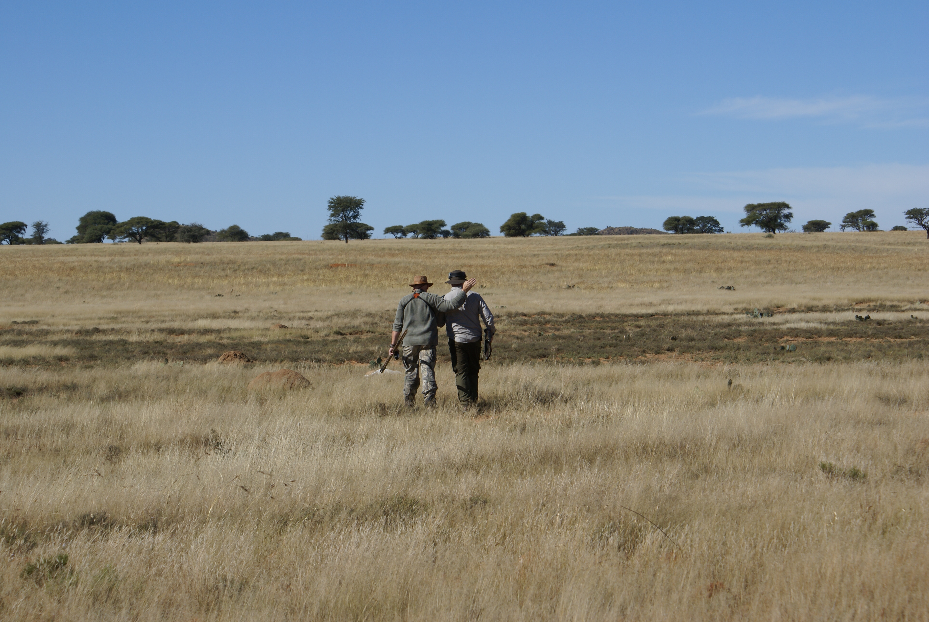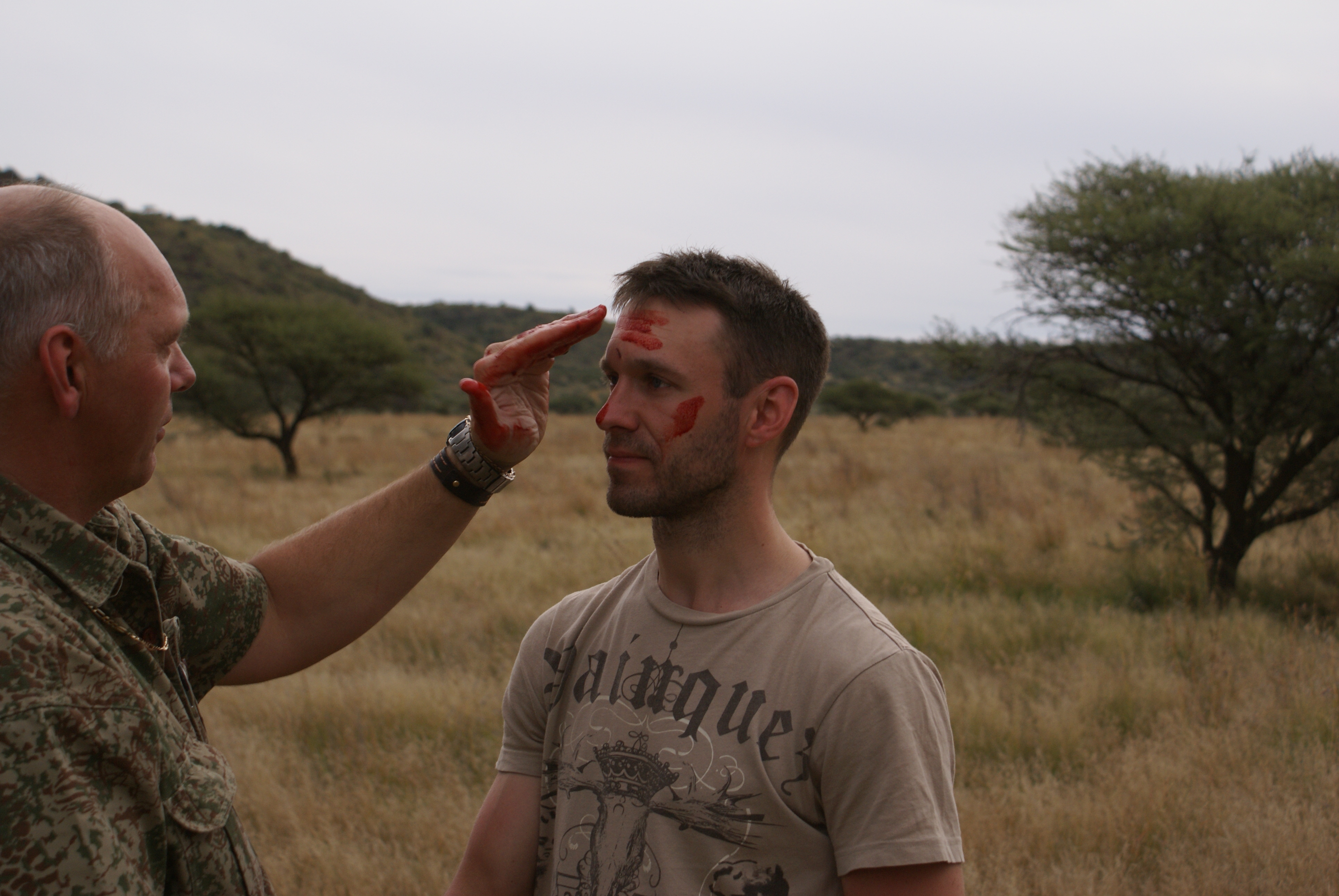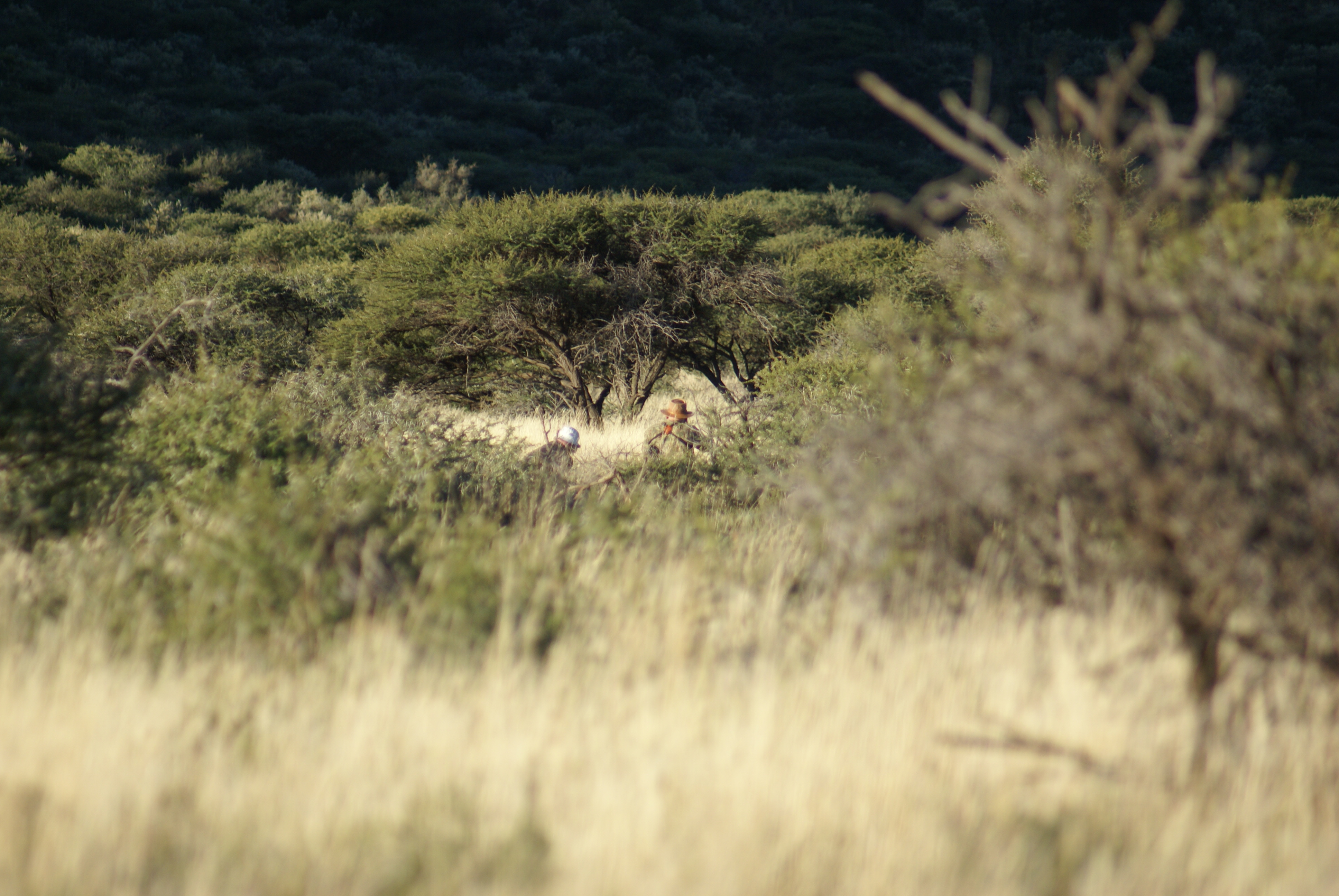 Publicerat Maj 25, 201015 yr 2010-05-102010-05-11Min resa började på arlanda kl. 16.00.Efter drygt två timmar var vi i Zûrich för en kort transfer till Johannesburg. Efter drygt tio timmars sömnlös flygning väntade en tre timmar lång paus i Johannesburg.Två och en halv timmes propellerflyg senare möttes vi av John på flygplatsen i Kimberly.Han hjälpte mig med vapen mm och sedan bar det av till Amakulu.Väl framme på farmen möttes vi av hela personalen som stod uppställda utanför entrégrinden.Det skakades händer och vi möttes av idel leenden.Vi drack en välkomstdrink och gick sedan för att titta runt och packa upp våra saker.Sedan var det dags för skjutbanan.. Tre skott på 100 meter för att se att allt fortfarande stämde med bössan. Sedan åkte vi runt lite nära farmen för att se om vi kunde få se några djur på kvällen. Vi såg springbock, Kudu, Impala, Sabel, Nyala mm mm.Kvällen spenderades framför brasan med gin&tonic, biltong och andra snacks i sällskap med John och Hettie m.fl.Morgonen efter möttes vi för frukost kl. 06.15.Efter det åkte vi ut med landcruisern på jakt. Vi körde några kilometer ut på savannen och ställde bilen bakom en kopje. Sedan spenderade vi resten av dagen till fots. Zebra var det första vi inriktade oss på då dom är ganska svårjagade. Dom trivs i öppen terräng och det är verkligen inte lätt att komma dom nära alla gånger.Under dagen såg vi mängder med djur. Bland annat giraffer.Mitt på dagen smög vi nära en ensam springbock-ram. Den närmade sig oss och jag la upp bössan på benstödet. Ena benet gled undan och jag bommade springbocken helt. Den hoppade omkring som tokig en stund och ställde sig sedan på 300 meter och stirrade på oss.Pinsamt då avståndet var ca. 90 meter. Men jag lärde mig att hålla vikten jämt på stödet därefter.Ett par ansmygningar på springbock blev det men inga fler avlossade skott mot dessa.När det började närma sig skymning gav vi upp för dagen.Vi satte oss i bilen och började röra oss hemmåt.Sam såg då en grupp Kudu på toppen av ett berg och John frågade om jag ville ta en klättring för att se. Självklart.Vi klättrade upp över berget och på andra sidan såg vi en grupp med två hanar och tre honor. Den största hanen hade fullt upp med att sniffa på en hona och vi smög oss närmare. Jag la upp bössan på ca. 230 meter, men det kändes inte tryggt då jag skjöt i nedförslutning. Så vi klättrade tyst ner hela vägen och smög oss nära. På 150 meter lade jag upp bössan igen. Lät skottet gå. Kudun rusade iväg och försvann utan mycket till tecken på träff. Efter en kvart hittade vi den ligga under ett träd och titta omkring sig. Jag sköt ett skott till och den suckade och föll ihop.Väl framme visade det sig att första skottet satt mitt i bogen och genom hjärtat. Ändå levde den när vi kom fram.En ståtlig Kudu. John gissade att den låg på drygt 50 tum och att det var den största som skjutits på området.Mitt första Afrikanska vilt var nu skjutet och enligt tradition så fick jag blodet från djuret i ansiktet och fick inte tvätta bort det förrän John gav tillstånd till detta. (”Men jag gillar Gin&Tonic så med lite tur får du tvätta dig i kväll” skrattade han)Nu följde fotografering.När vi sedan skulle lasta Kudun så märkte vi att vinschen inte fungerade. Vi fick kalla på bärhjälp och lastade Kudun för hand. Sedan följde en nervpirrande tur genom bäcksvart savann.Hemma väntade en jaktsnaps och sedan middag.Ett par gin&tonic senare var det läggdags. Frukost i morgon kl. 06.15 Med vänlig hälsning John Johnson Hjord