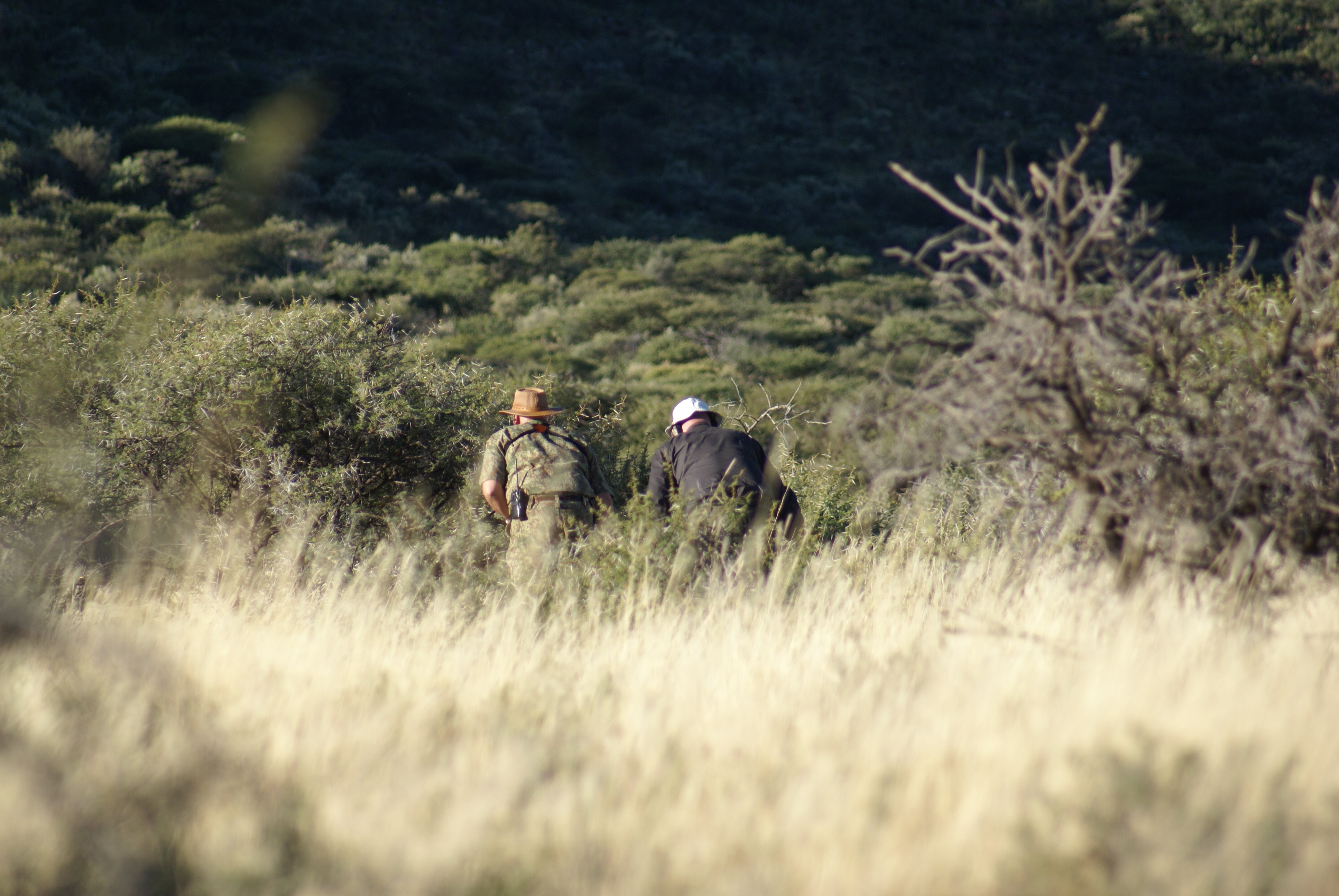 Publicerat Maj 26, 201015 yr Författare 2010-05-13 Frukost 06.15. Vi är fortfarande ute efter Zebra. Efter att vi gått ca två timmar klättrar vi upp på en kopje för att kikarspana. Då ser vi dom långt bort. Vi rör oss sakta mot platsen där dom står men dom vill inte stå stilla. Ledarstoet verkar driva dom till att springa omkring planlöst på savannen. Vi sätter oss och väntar i ca 30 minuter, men dom följer inte våran plan. Vi hittar en uttorkad flodbädd med spår av zebra i. Vi följer denna en bra bit. John smyger upp över kanten för att ta sig en titt. Han kommer ner och viskar. ”Det står två Impala-rams 60 meter bort” Jag kryper upp och gör mig klar. Jag får välja själv vilket djur jag vill skjuta. En impala står fint uppställd med bredsida mot mig och jag låter skottet gå. Impalan faller i skottet. Ett fint bogskott och mitt andra afrikanska vilt ligger Vi märker upp Impalan med min färg, blå, för skull mount och flatskin. John är förvånad att jag väljer den. Det var inte den största. Men det var den som ställde sig bäst. Lunchen intas i bilen på väg till nästa område. Nästa område ligger någon mil bort. Vi är fortfarande ute efter Zebra. I ungefär en timme följer vi en grupp zebror som håller sällskap med en gupp oryx och tre giraffer. Ansmygningen är genom ålning ca 100 meter till en liten buske upp på ett krön. Nedanför oss på ca 200 meter står zebrorna. Precis när jag lägger upp bössan på skjutstödet så får djuren vind på oss och springer iväg. John sitter i denna stund och kikar till vänster. Han knackar mig på axeln och visar vart en fin springbock-ram står och betar. Han har inte tagit notis om vår närvaro och jag lägger lugnt om bössan åt det hållet. John har svårt att uppskatta avståndet i nedförslutningen och med det höga gräset, men han gissar på närmare 200 meter. Skottet går och springbocken faller i skottet. När vi kommer ner ser jag att skottet har tagit fint i bogen men något långt fram. Men den föll på platsen för min 9,3x62 Swift A-frame kula på 250 grain. Hornen är enligt John minst en ”big silver” Hur som helst en mycket vacker springbock efter en tuff jakt. En ny tradition visar sig nu. När man skjutit sin första springbock som är sydafrikas nationaldjur så ska man äta en bit av dess lever direkt efter skottet. Enligt Sam så skulle man äta en bit av testikeln men det slapp jag. Med lite vatten gick levern ner. En ny pürch efter zebra. Vi kom som närmast in på 200 meter men precis i skottögonblicket så sprang dom iväg. På väg tillbaka såg vi en noshörning med sin kalv. Vilken upplevelse!! Väl tillbaka på farmen åt vi lunch. En hamburgare på Blue wildebeest. Arne sov middag och jag passade på att skriva lite dagbok. På jaktmenyn för eftermiddagen står Oryx och Warthog. Zebrorna i det området är mountain zebra. Dessa kostar 15 000zar att skjuta. Efter lunch blir det ändrade planer. Vi håller oss i området runt en mil från farmen. Fortfarnade på jakt efter dessa zebror. Vi går upp på en kopje för att kikarspana. John ser zebrorna borta i horisonten. Fler ansmygningar och ålningar senare kommer vi till en öppen del av savannen. Vi tar oss istället in i tätare bush. Vi smyger oss sakta förbi några unga oryg och sabelantiloper. Vi hittar en buske där vi sätter oss för att invänta och se vad zebrorna tar sig för. Vi väntar länge men dom rör sig inte mycket. Vi tar oss sakta framåt när zebrorna plötsligt börjar springa i vår riktning. Vi sätter oss intill ett träd och jag gör mig klar. Efter ca tio minuter kommer zebrorna springande på inte mer än 20 meters håll. Men dom stannar inte till utan springer rakt förbi oss i hög fart. Jag tar inte risken att skjuta. Efter zebrorna kommen en grupp oryg och ställer sig på drygt 100 meter. John ger klartecken på den sista i gruppen. Jag vänder snabbt ditåt, men gör samma miss igen. Jag vrider med mig skjutstödet och det faller ihop. Skottet går en meter framför djuret i marken. IGEN………………………….. För säkerhets skull kommer Sam och kontrollerar spåren. Inga tecken på att något träffat. Jakten på zebrorna fortsatte. Men ingen zebra idag heller. Dom är grymt svårjagade. Antingen känner dom ens närvaro eller så står dom så tätt i gruppen att man inte kan komma till skott. Dessutom med en ledare som får dom att nervöst springa omkring hela dagarna. Det börjar mörkna och vi börjar packa bilen för hemfärd. Sam säger något till John. John säger åt mig att sitta med bössan klar. ”Sit in the front with your rifle ready. The night I jakal-time” Sam star med strålkastare och jag sitter redo. Men ingen jakal vågar visa sig denna kväll. Men vi ser bat eared fox och wildcat. Väl hemma väntade Hettie och Anne med middagen. Förrätt: Brown mushroom , ugnsbakad med fyllning. Varmrätt: Eland med couscous-potpuri. Efterrätt: Glass med kiwi och marräng. Och gott sydafrikanskt vin. Efter det, den obligatoriska G&T. / John Johnson Hjord