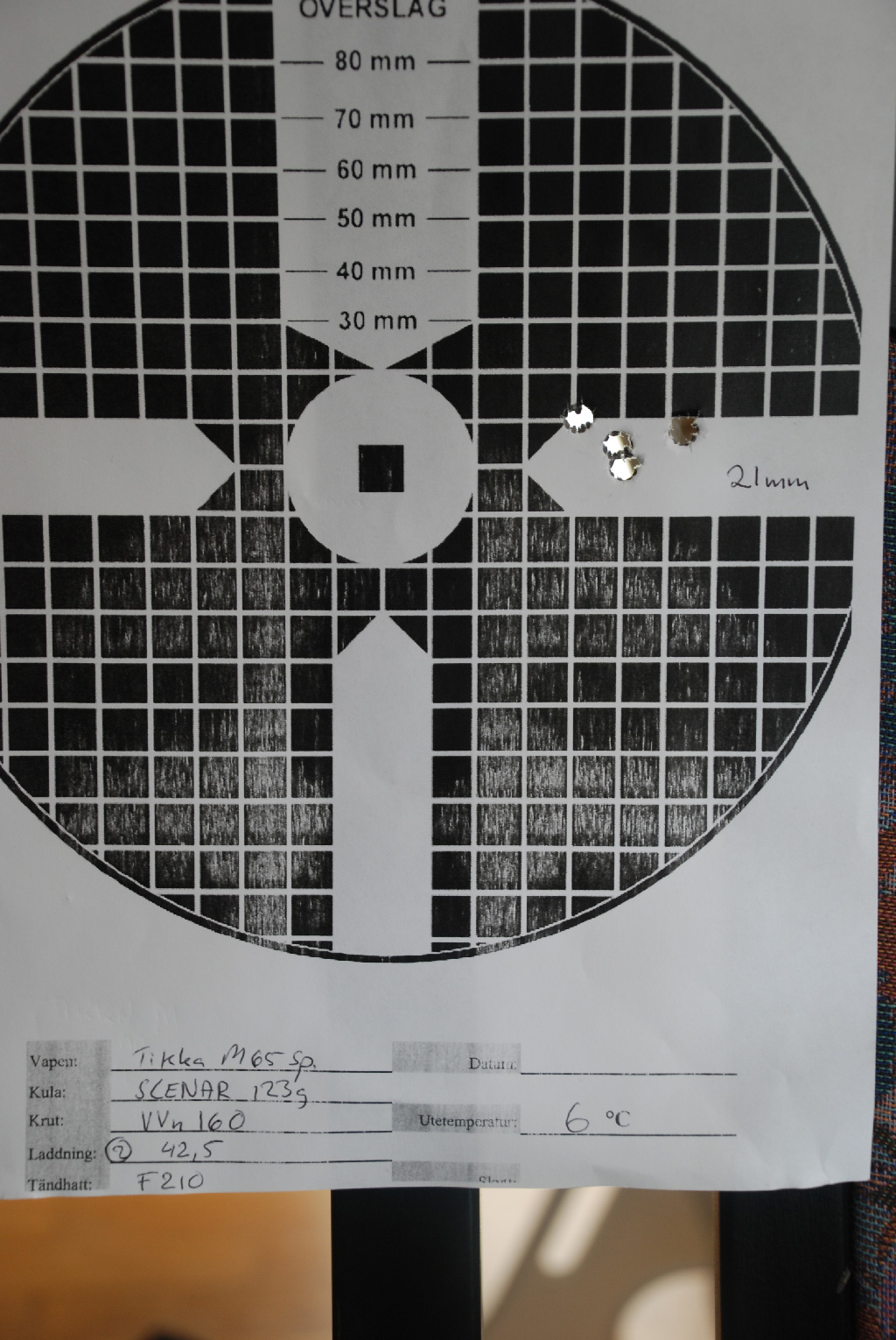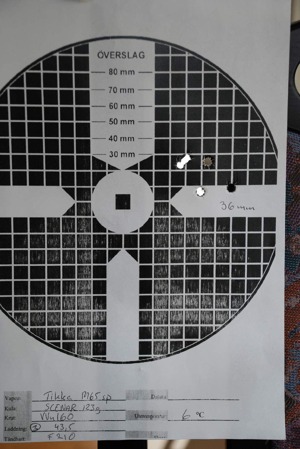 Publicerat Oktober 11, 201015 yr Författare Gjorde en laddstege med scenar 123grain o VVn160. Då jag varkens e mästerskytt (ännu ) eller mästerladdare har jag svårt att se skillnader. Tycker dock att de skiljer minimalt. Vilken skulle ni valt att fortsätta med? Avstånd 100m vind ca:5ms/90grader v. 6grader celsius Kula L.Scenar 123 krut VVn160 tändhatt Federal 210 78långa FF 2mm 41,5g 42,5g 43,5g 44,5g 45g