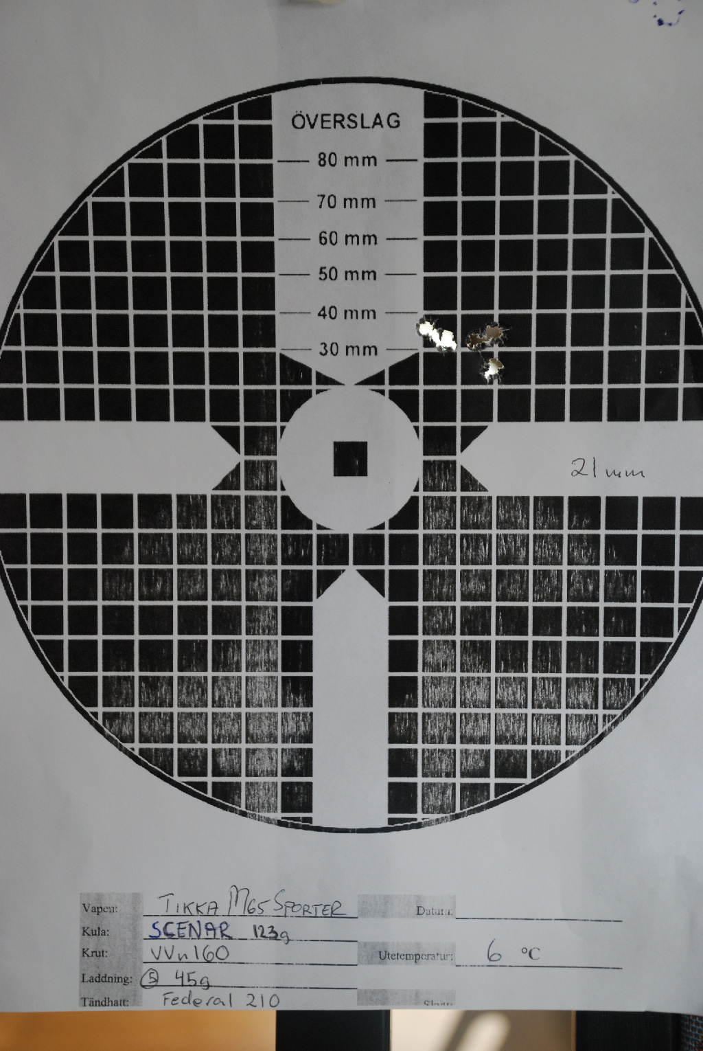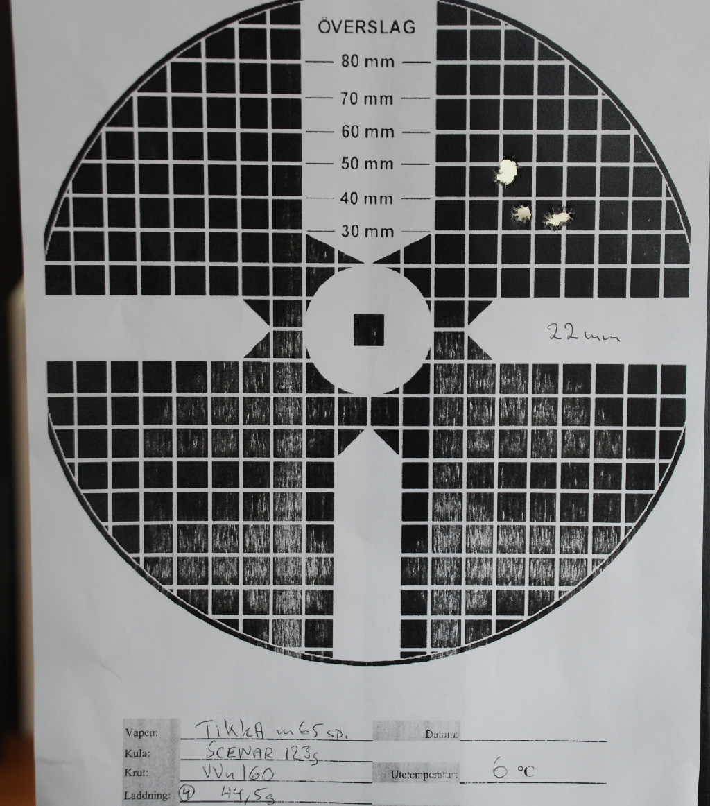 Publicerat Maj 26, 201015 yr Var på banan med min Tikka 695 idag och sköt med fabriksladdade DL fält dessa ger 4,5mm friflykt i min bössa. Efter att träffat en 30x30cm. plåt 15gånger på lika många skott på 500 meter förstod jag att den nog skjuter rätt skapligt, testade då 10 skott på en C50 på 500meter detta är resultatet Rent fånigt bra med en helt standard bössa som inte ens är plastad och köpes ammunition visst lär inte alla serier var så bra men nog fungerar den med denna ammunition. Givetvis kan du köra ett test vilken friflykt som fungerar bäst men testa då från minst 5mm.