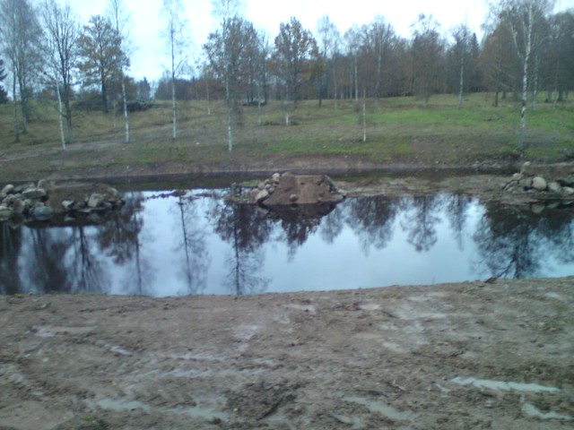 Publicerat Augusti 29, 201015 yr Författare Phu började med sättningen av munken id 9 i morse och var klar vid 9 i kväll. Ett satans bråk med att få i rör o få allt på plats, inte blir det väl bättre av att jag kände mig sysslolös en stund så jag baxade ner 8,5m 400 rör o släpa upp det för dammen för att använda det som överfyllnads skydd eller breddavlopp vilket man vill. Det finns ju maskiner men han var så i tagen med att gräva så jag baxade runt det själv........det var jobbigt Nu får den sista delen av damfästen ligga till sig någon vecka eller så medans grävmaskinisten är i norra delar av landet o jagar. Nu står munken utan brädor o bara släpper genom vatten, gisses vad skönt. Vi hade missräknat mängden massor till den sista damfästet så utanför munken går det att dyka om man vill, säkert 4 meter djupt SOVA. //