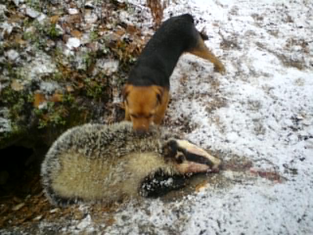 Publicerat November 22, 201015 yr blev två grävlingar för terriern förförra helgen tror dock inte att det blir nå mer grävlingsjakt med han då denna jakt höll på att kosta han ett öga. han klarar synen men jag tvivlar på att han blev så mycket smartare av den upplevelsen så därför tror jag att jag avstår från att medvetet släppa på grävling.(får för mycket skäll av matte)