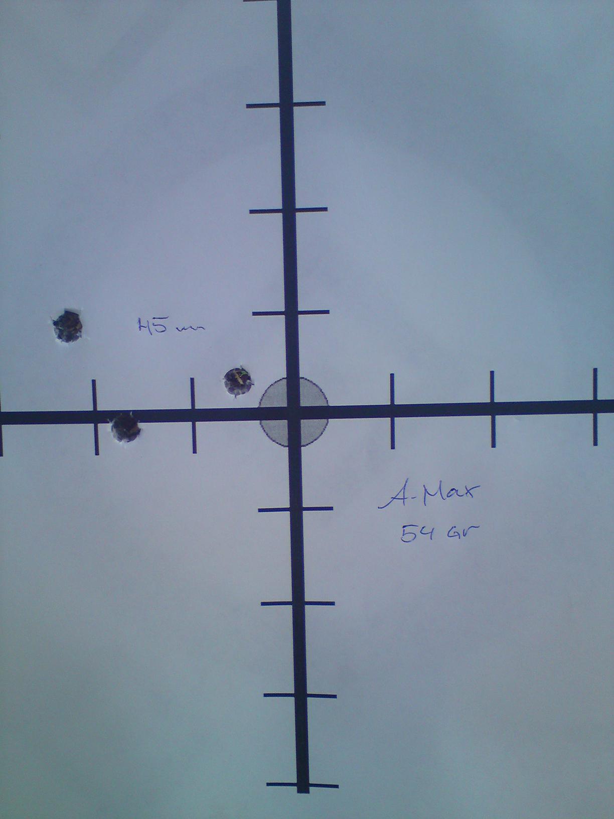 Publicerat Augusti 10, 201015 yr Författare Så har vi provat 162 gr A-Max. Laddade med 53 Gr 54 Gr 55 Gr Verkar som träffbilden öppnar upp ju mer krut jag pytsar i ? Ska prova med både 56 och 57 för att se hur det blir. Rekyl rädd kanske Synd att jag inte hinner i dag... //