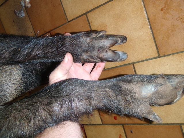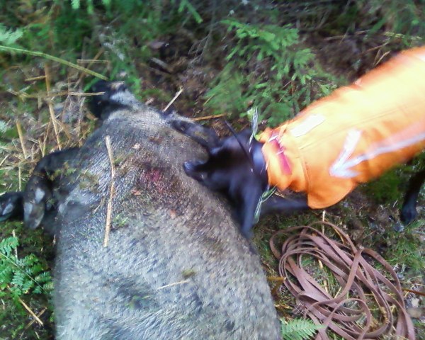 Publicerat Augusti 15, 201015 yr Hade ju en älgolycka igår vid middagstid. Igår kväll, 21,40 skjuts det på en gris av 4-5 vuxna o kultingar i säden. Vi är där vid 23.30 o när vi närmar oss så är det fullt med gris i åkern. Ser minst 3 stora i alla fall, Blackie går i taket o står på bakbenen o skriker. Vi försöker att hitta skottplats, grisen skrek när det small sen visste inte skytten vart den tog vägen eller vilken det va han skjutit på, misstänker att han sköt på en sugga… Helt hopplöst att få kräket till o sätta ner nosen o spåra. Vi avbryter och jag ringer in en rutinerad jämte. Vi måste ju ändå vänta tills det lugnar ner sig. Vi letar blod o skottplats medans vi väntar in jämten. Hittar inget men misstänker var skottplatsen är, Blackie satte ner näsan en gång på ett ställe. Jämten kommer o släpps direkt o far runt i säden o tar löpor åt alla håll o kanter. Vi hittar lite blodstänk där jämten satte ner näsan på samma ställe som mitt kräk. Efter 1,5 timmes snurrande runt skottplats o vi försökte spåra med mitt kräk också o släppte henen med men hon kom ingen vart alls… då drar jämten ut några km o jag tycker jag hör 3-4 skall men jycken vänder o kommer tillbaka. Vi har inget mer o ta till… kommer hem vid tre. 06.22 ringer det igen o en ensam gris påskjuten… Orkade inte ens leta skottplatts…. Påskjuten i en kalvhage. Blackie tog spåret o det gick på räls längs åkerkanten o sen ut genom ett grindhål. Jycken blir hetsig o jag kopplar loss. 50 m längre fram går hon igång med några grova skall. Har förresten skaffat action cam.. fast de blev ju ingen action… yuKfZp0hr_s Död galt med rätt schysta betar. Nu är jag något sliten…. kräket också.. o vi har inte ens kommit till den 16 än..