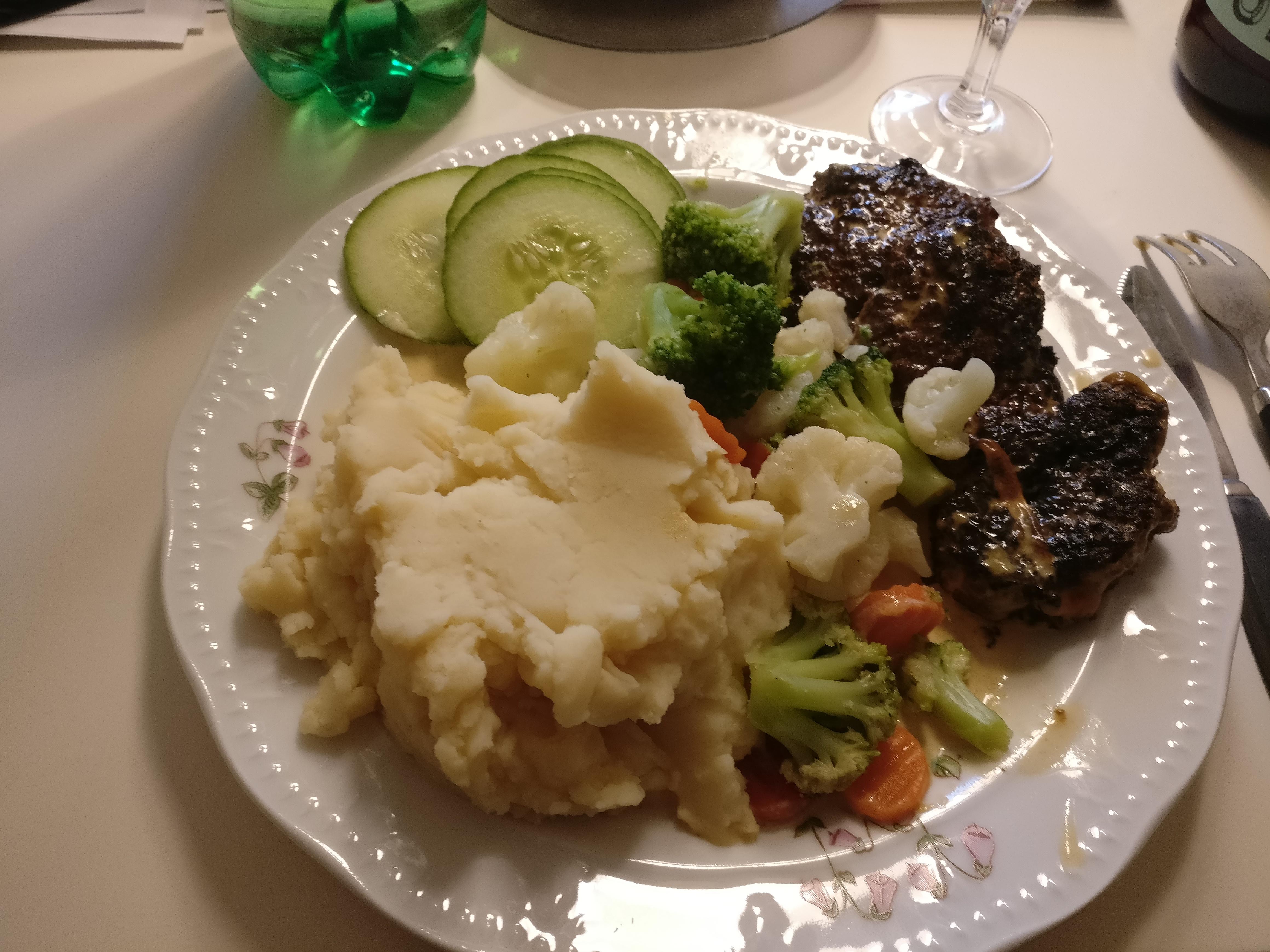 Publicerat April 30, 20205 yr 32 minutes ago, shamani said: Gjorde ju pannbiffar häromdagen.. La dom i en form efter vart som som var klara. Den formen hällde jag grädde över, lite vitpeppar, salt och kinesisk soya åkte med också. In ugnen.. Lite grönsaker och mos till.. Fuskade med pulver idag.. Ett tips till pulvermoset, blanda in 20-30% rotmospulver = lyfter smaken på *stompet*