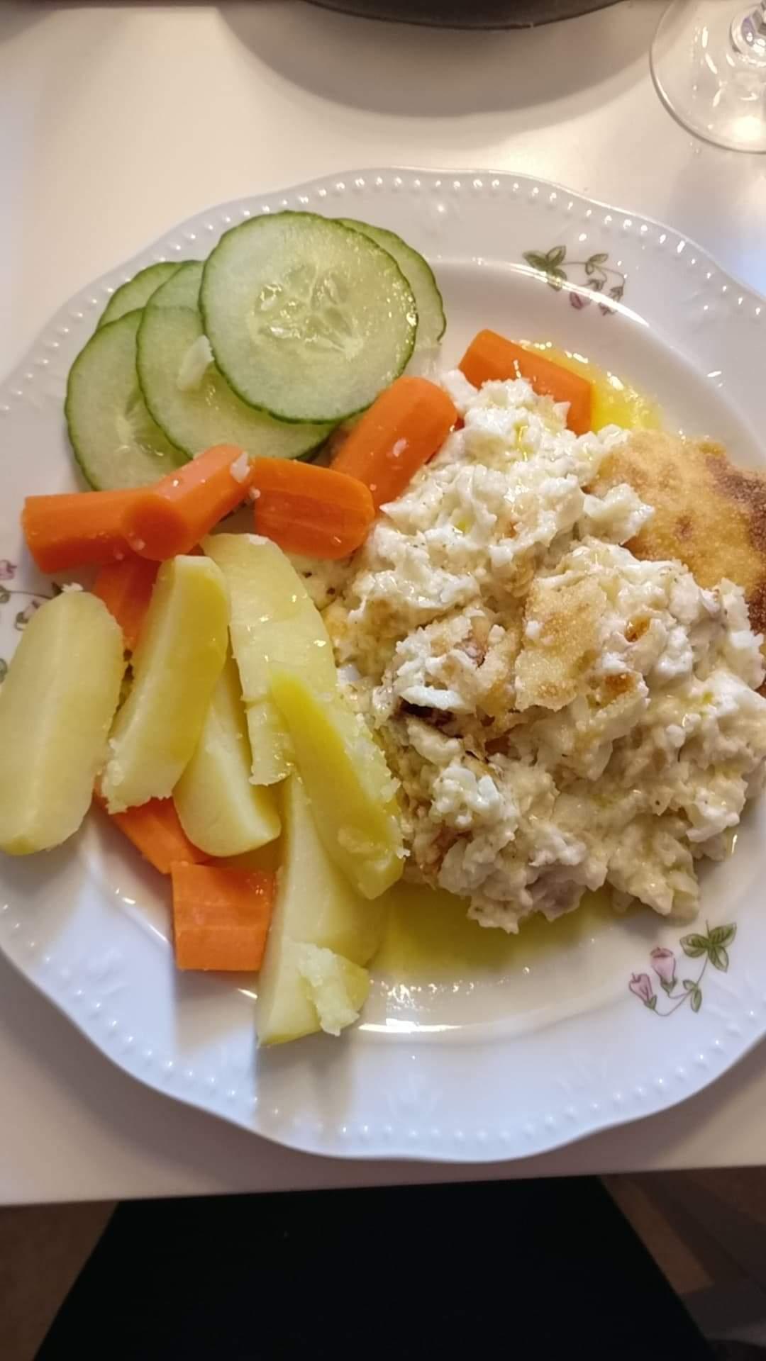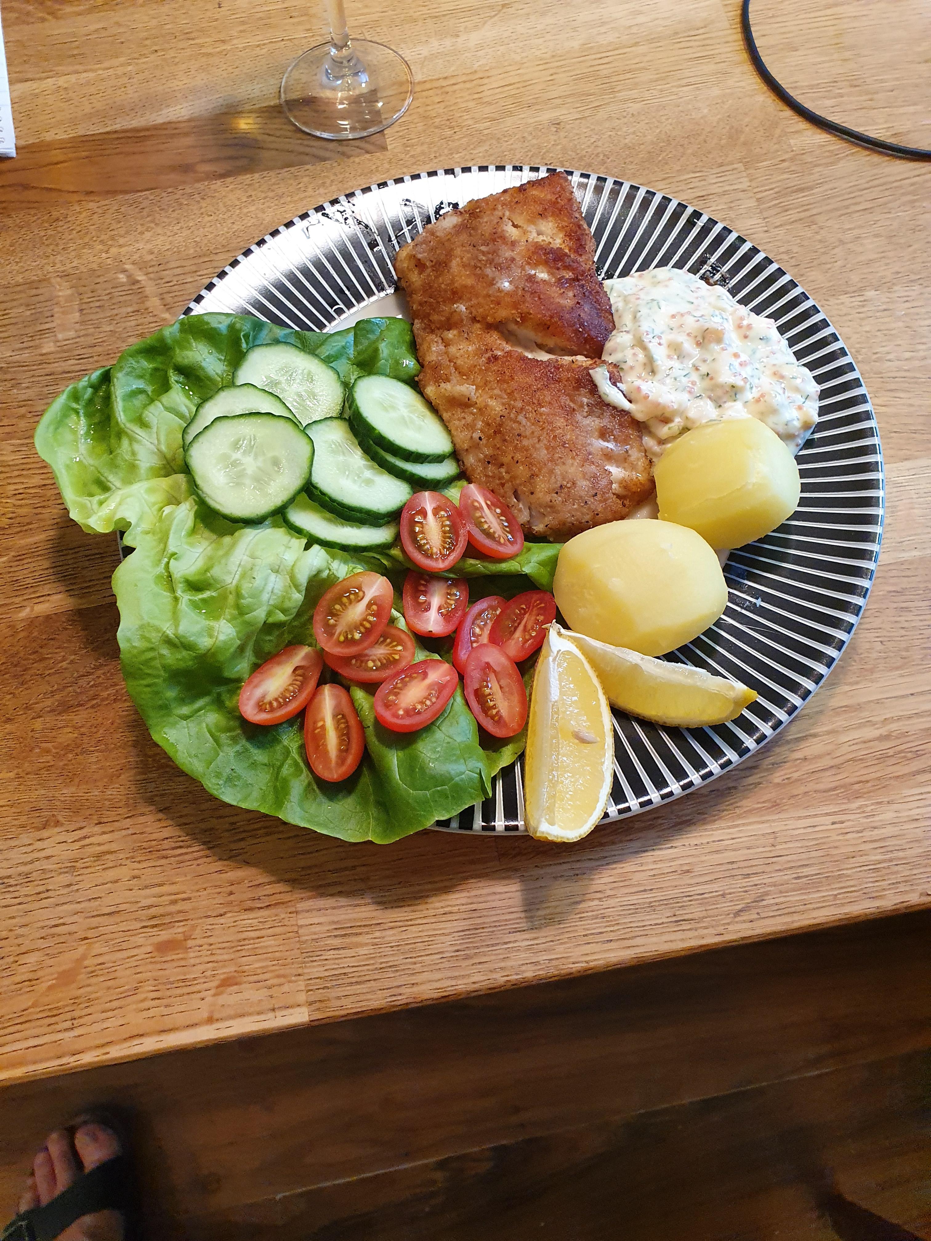 Publicerat Maj 1, 20205 yr Detta är en populär post. Blev Gösfilé ikväll, med potäter, grönsaker och en hemfixad kall sås med räkor. rom dill, basen var Turkisk yogurt .