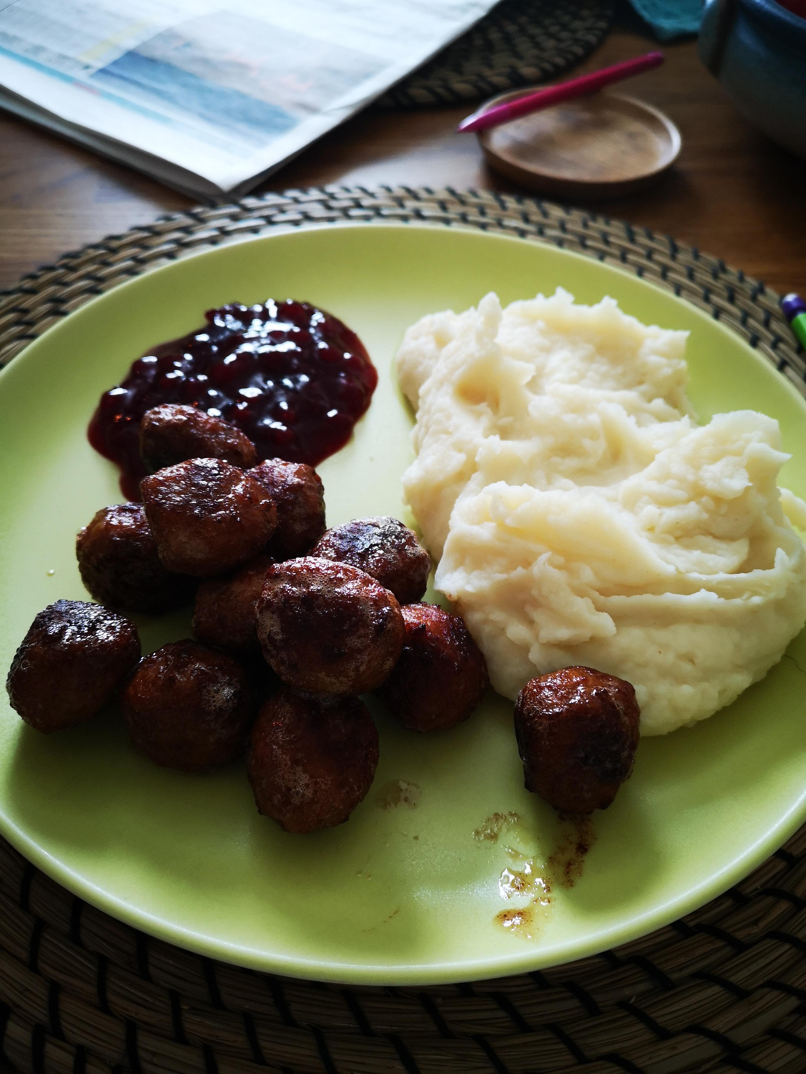 Publicerat Maj 15, 20205 yr Köttbullar, potatismos med mycket smör i och rårörd lingonsylt. ? Nåra plommontomater blev det också för att vara lite nyttig. ?