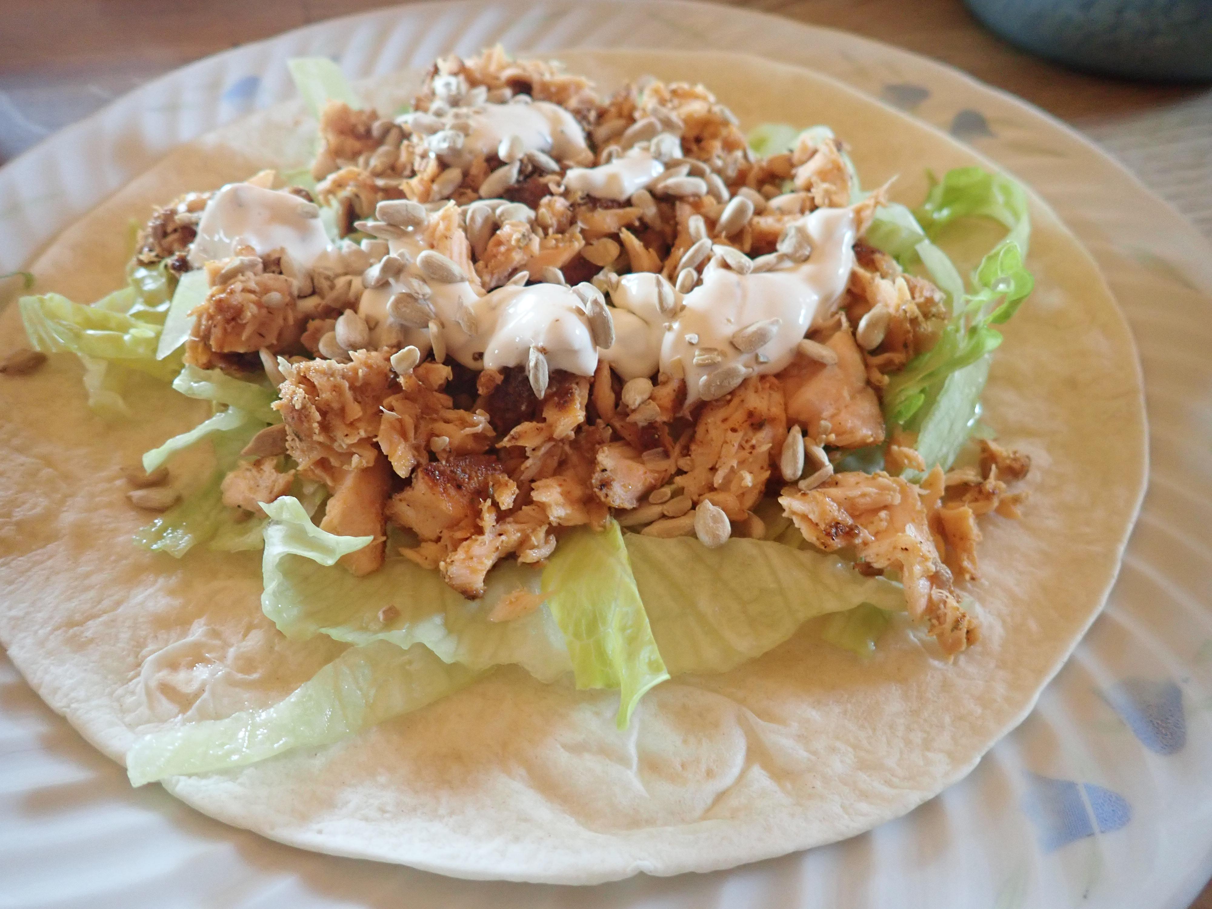 Publicerat Maj 7, 20205 yr Detta är en populär post. Sotgrillad lax ( chili och massa andra kryddor) sallad, rostade solrosfrön, creme freiche naturell som fått gosa till sig några timmar med rostad och finhackad vitlök, rökt paprika pulver och timjan i kylen. Äts som wraps i tortillabröd.