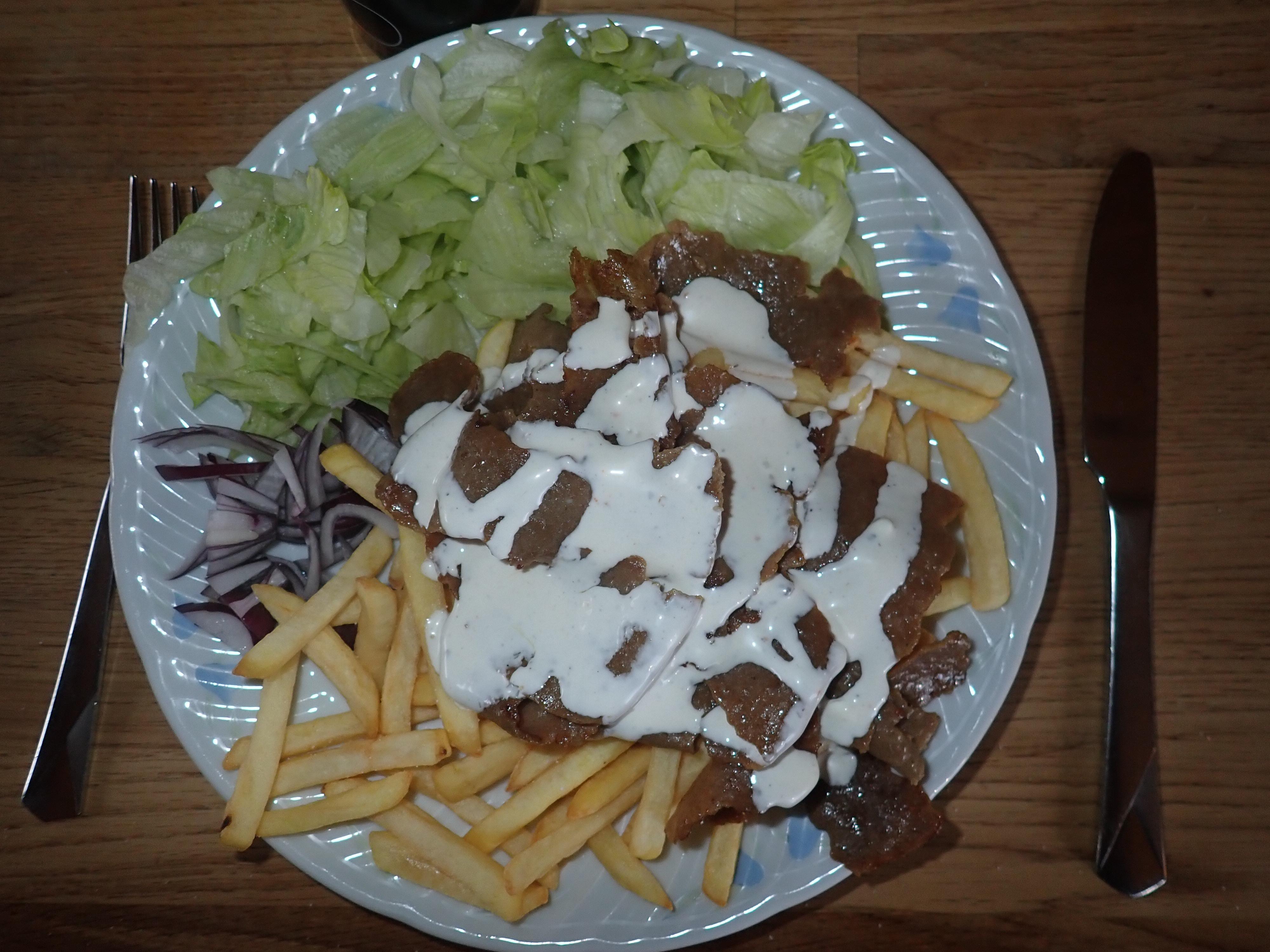 Publicerat Maj 16, 20205 yr Blev kebabtallrik som vi fixade ihop hemma igår. Järsvö kebab, sallad, hackad rödlök, friterade pommes och Rydbergs Vita kebabsås. ? = Matkoma. Inte så mycket matlagning riktigt men jäkligt gott ändå!